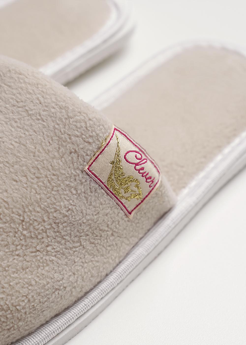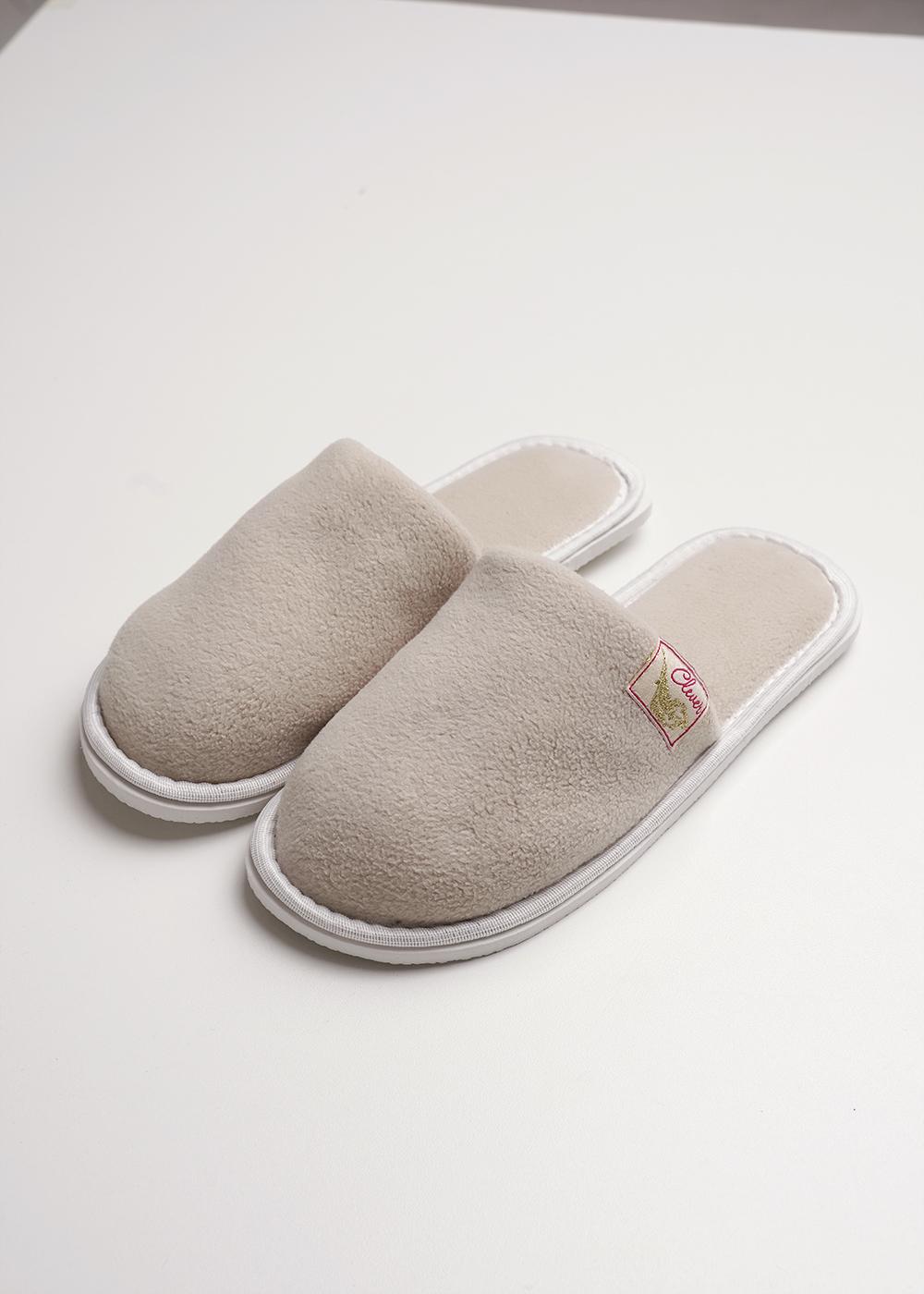 "Описание: Лёгкие, домашние тапочки для дома с закрытым носом из трикотажного полотна флис, с нашивкой.Толстая подошва.