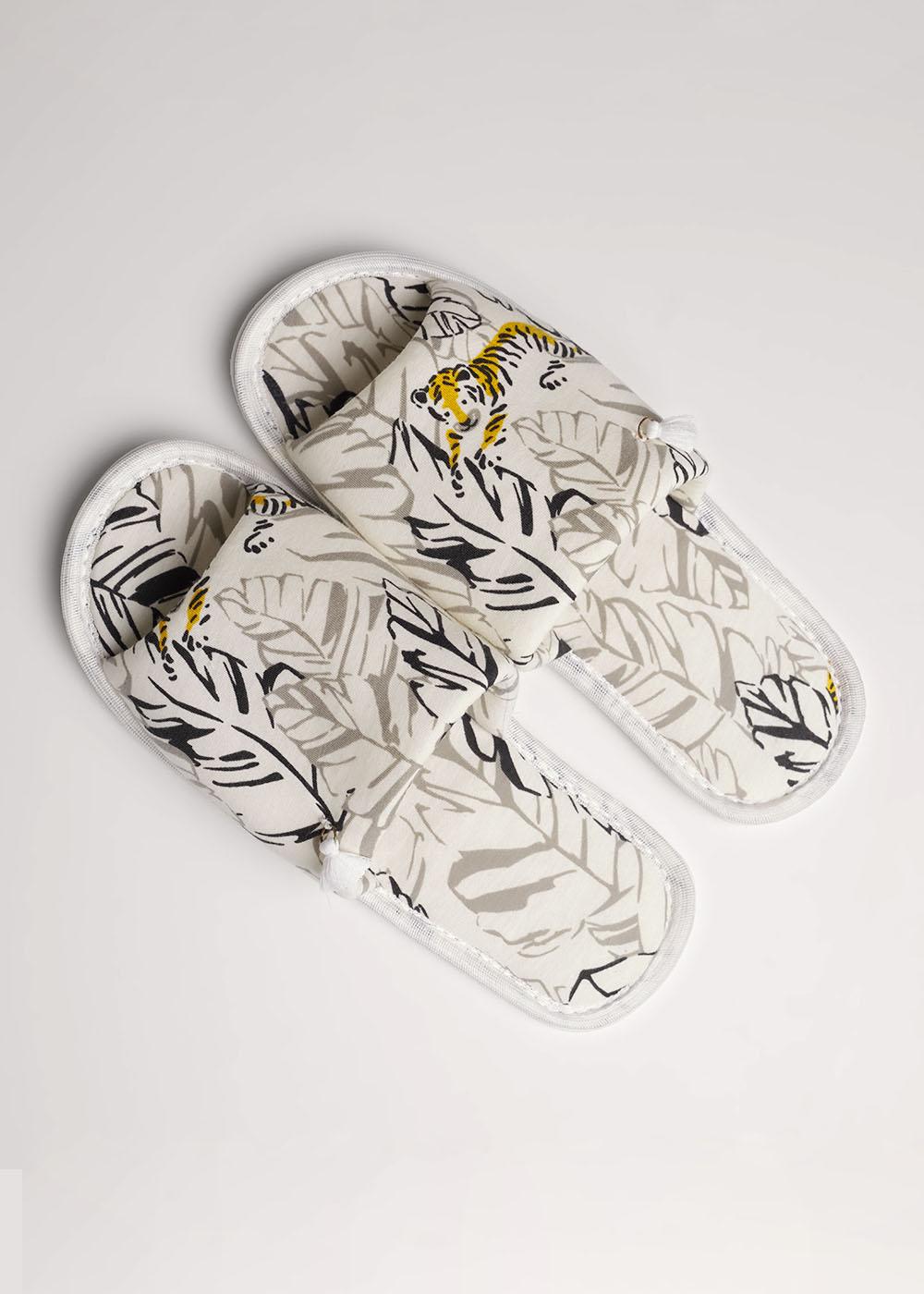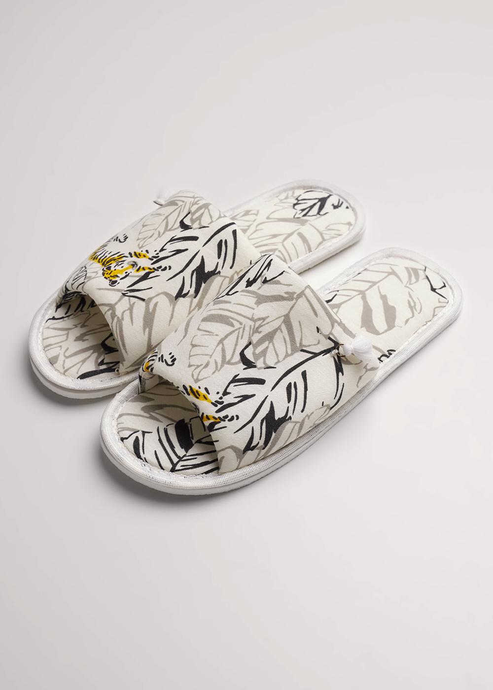 "Описание: Лёгкие тапки для дома и отдыха с открытым носом из хлопкового трикотажного полотна, нашивка. Толстая подошва.