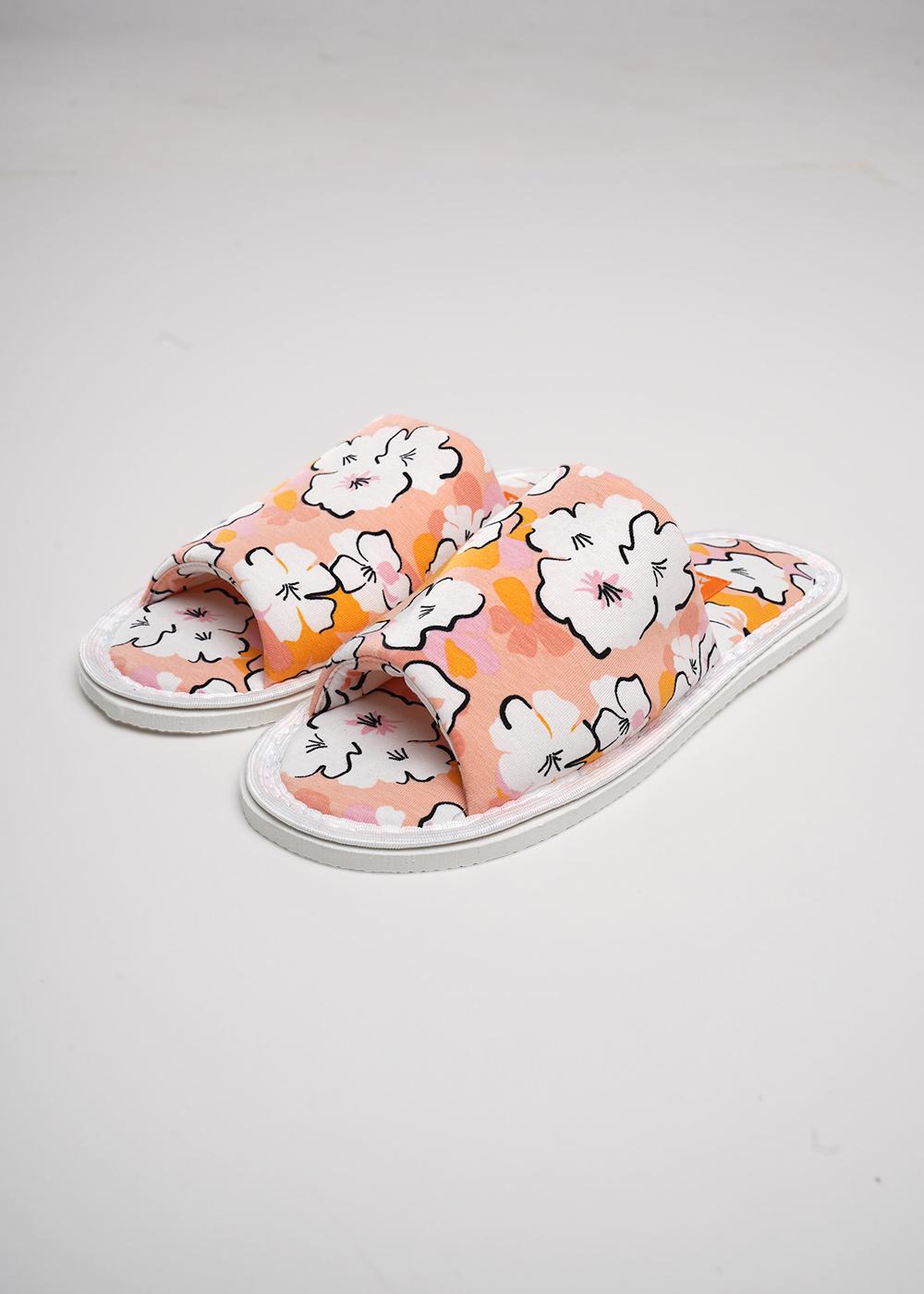 Домашние тапочки с открытым носом из хлопкового трикотажного полотна с эластаном, нашивка на стелке. Толстая подошва.