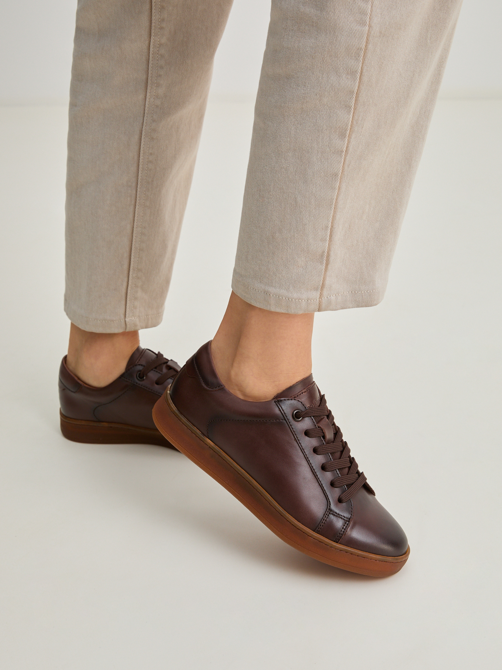 ​Каучуковые подошвы не промокают, их можно носить в любую погоду. Каучук переносит морозы лучше резиновых подошв: он меньше грубеет и не теряет эластичности. Обувь с каучуковой подошвой – хороший выбор, если вы много времени проводите на ногах. Характерная липкость материала делает подошвы нескользкими, вы будете чувствовать себя уверенно на разных покрытиях (плитке, ламинате, асфальте). Подошву на основе натурального каучука можно узнать по маркировке «Lactae Hevea» или «Latex 100% naturel».