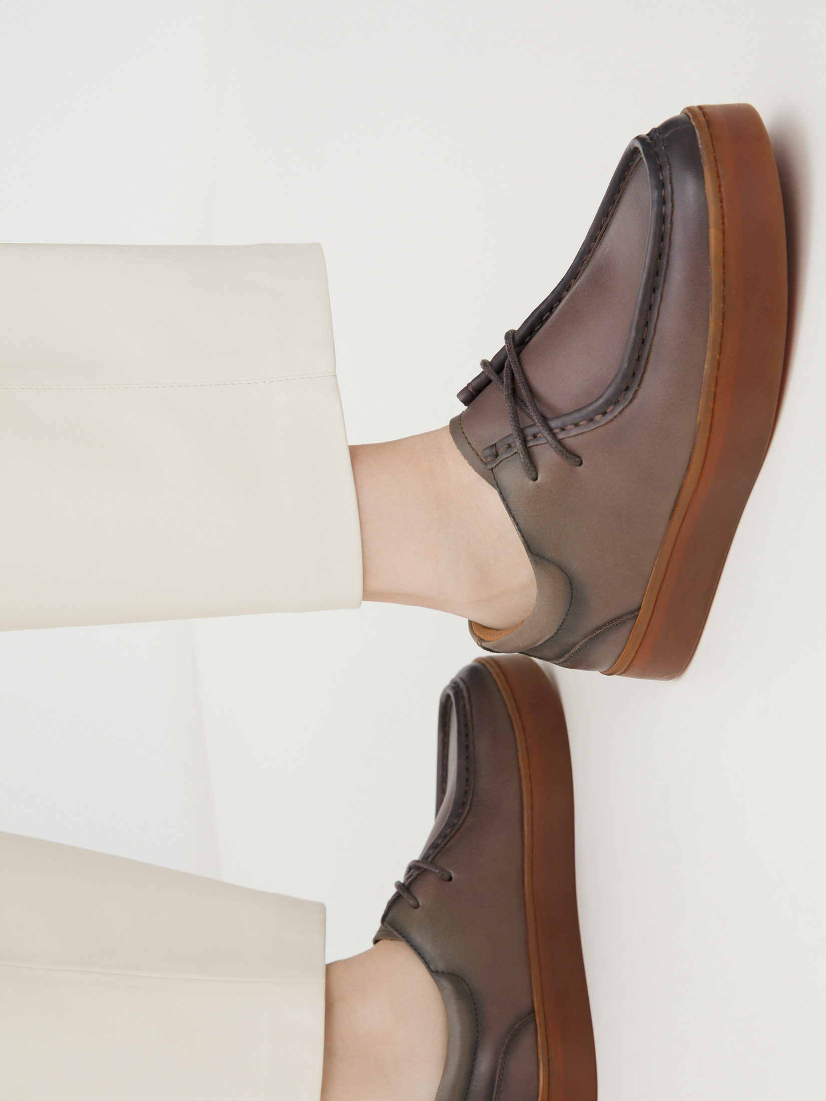 ​Каучуковые подошвы не промокают, их можно носить в любую погоду. Каучук переносит морозы лучше резиновых подошв: он меньше грубеет и не теряет эластичности. Обувь с каучуковой подошвой – хороший выбор, если вы много времени проводите на ногах. Характерная липкость материала делает подошвы нескользкими, вы будете чувствовать себя уверенно на разных покрытиях (плитке, ламинате, асфальте). Подошву на основе натурального каучука можно узнать по маркировке «Lactae Hevea» или «Latex 100% naturel».