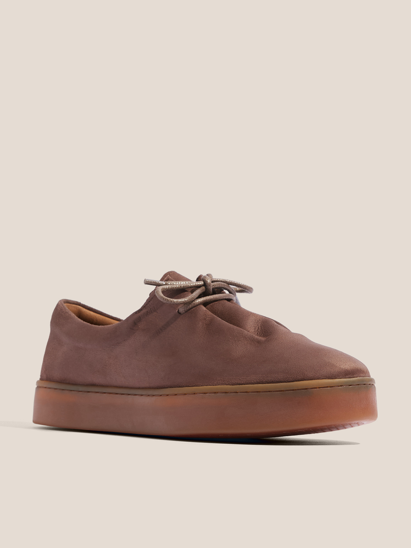 Подошва этой модели сделана из натурального каучука, который превосходит синтетический материал в прочности, эластичности и комфорте. Каучуковая подошва до 50% снижает ударную нагрузку при ходьбе и рекомендована всем, кто заботится о здоровье суставов и позвоночника. Каучуковые подошвы не промокают, их можно носить в любую погоду. Каучук переносит морозы лучше резиновых подошв: он меньше грубеет и не теряет эластичности. Обувь с каучуковой подошвой – хороший выбор, если вы много времени проводите на ногах. Характерная липкость материала делает подошвы нескользкими, вы будете чувствовать себя уверенно на разных покрытиях (плитке, ламинате, асфальте). Подошву на основе натурального каучука можно узнать по маркировке «Lactae Hevea» или «Latex 100% naturel». Подробнее об истории и производстве натурального каучука читайте в нашем блоге.