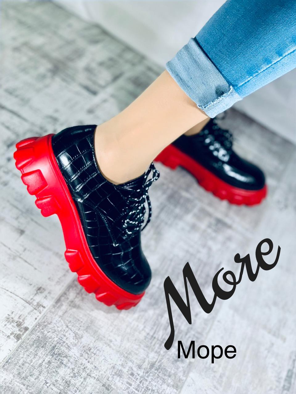 Море 300-6 Ботинки женские чер-красн иск кожа рептилия, подклад текстиль