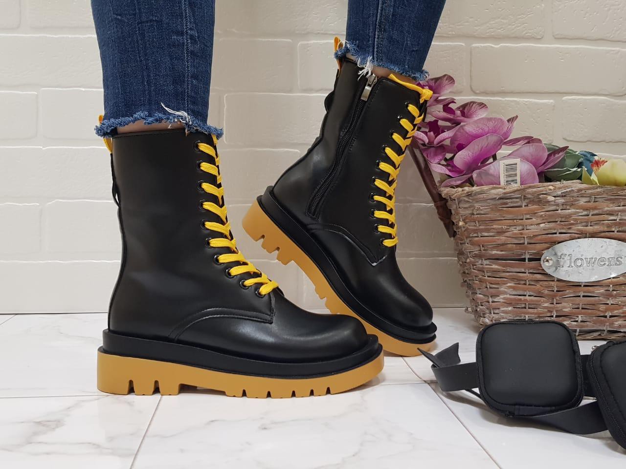 Nicole N-42 Ботильоны женские чер-желт иск кожа, подклад байка, ремешок съемный