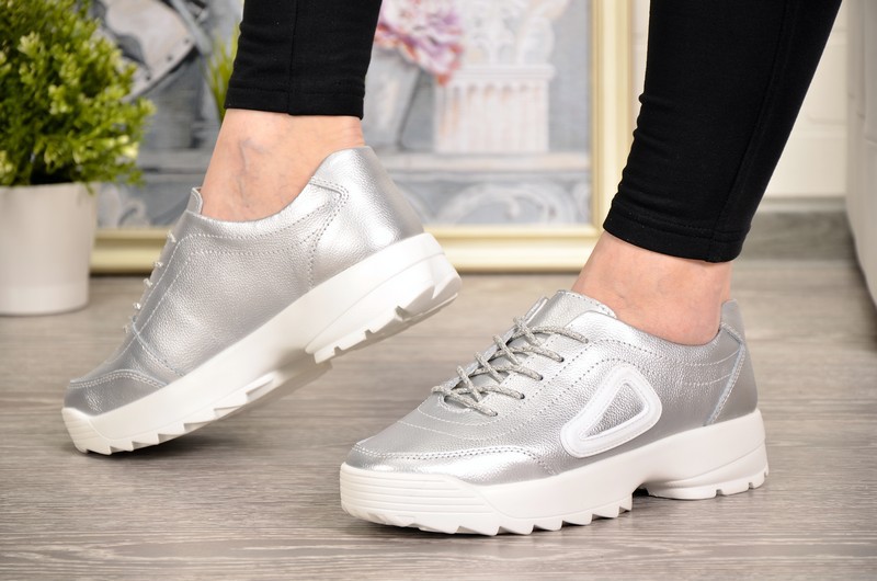 Ribu 67166-4 Ботинки женские серебр нат (прессов) кожа