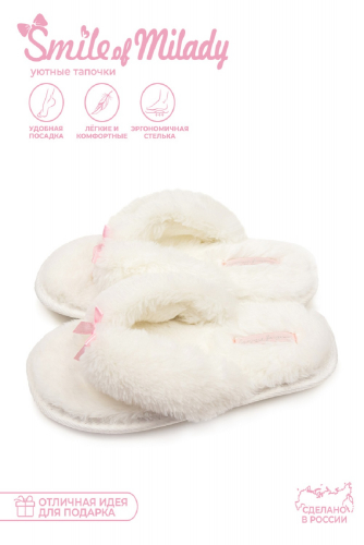 Комнатные женские тапочки вьетнамки от бренда Smile of Milady - стильная и комфортная домашняя обувь. В этих меховых тапках нога отдыхает после насыщенных рабочих будней и активных выходных. Модель теплая, пригодится в межсезонье и зиму. Мягкие домашние сланцы можно взять с собой в путешествие, в командировку, на дачу. Запасите несколько пар для гостей. Шлепанцы для женщин подойдут на широкую ногу, полную стопу. Шлепки имеют гибкую подошву из экологичного материала эва (eva). Она не скользит, достаточно мягкая и прочная, обеспечит амортизирующий эффект, снижающий усталость ног. Это красивая дизайнерская домашняя обувь, в которой приятно проводить время и заниматься делами.