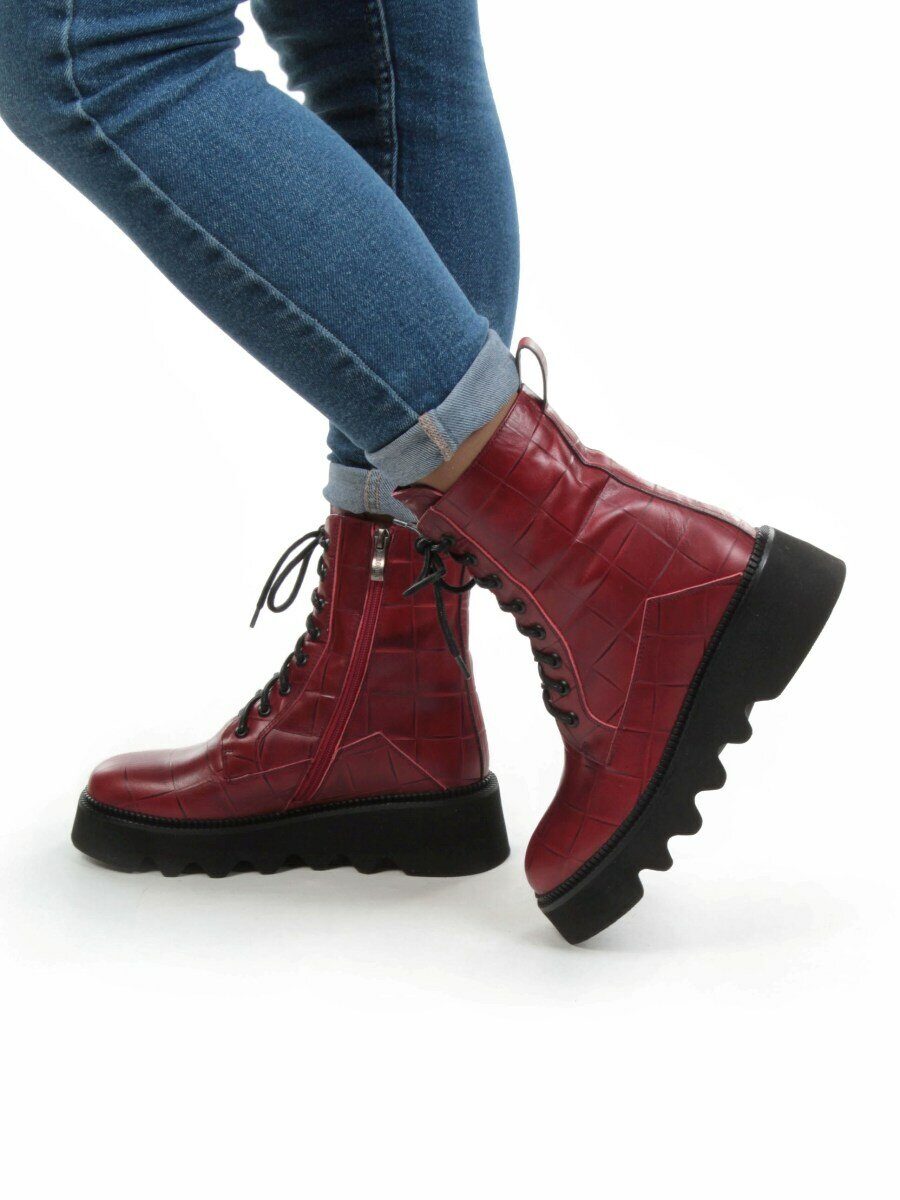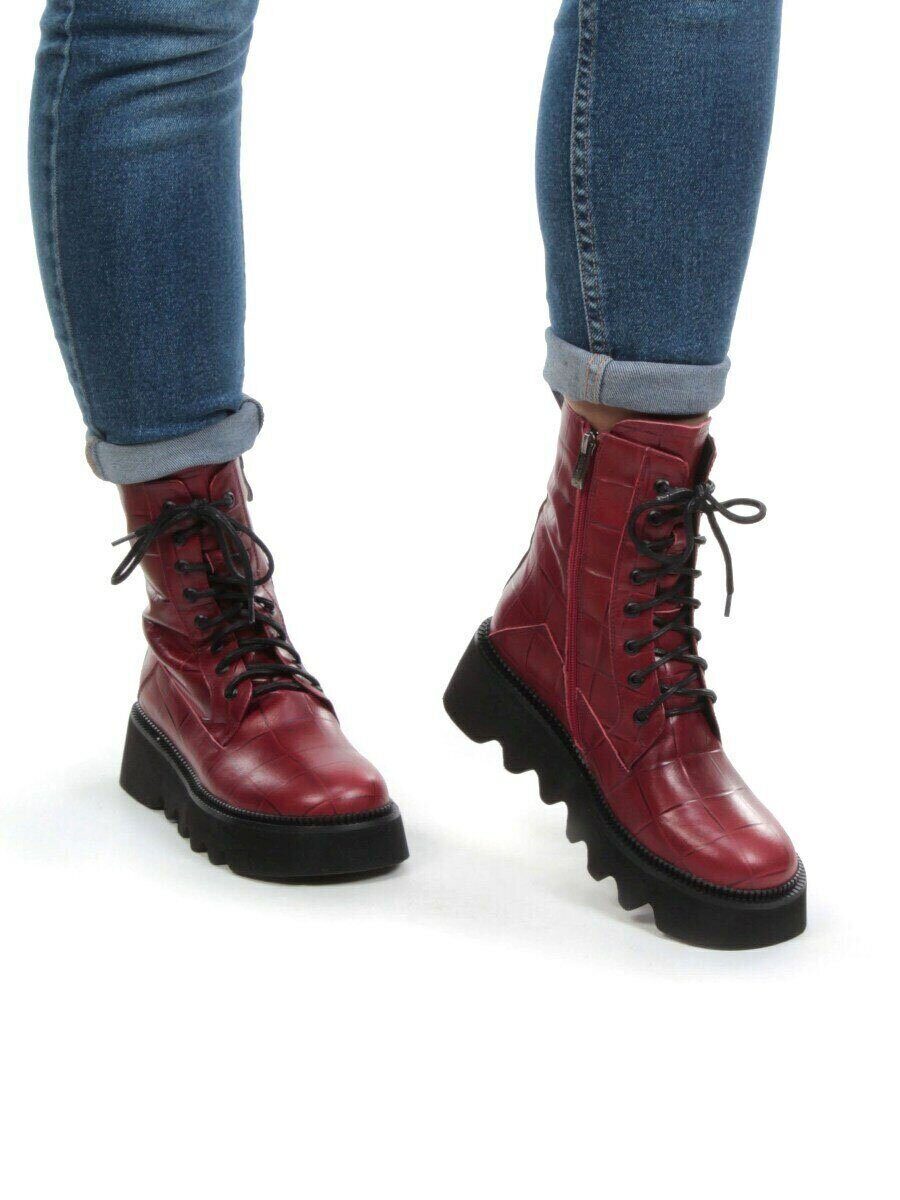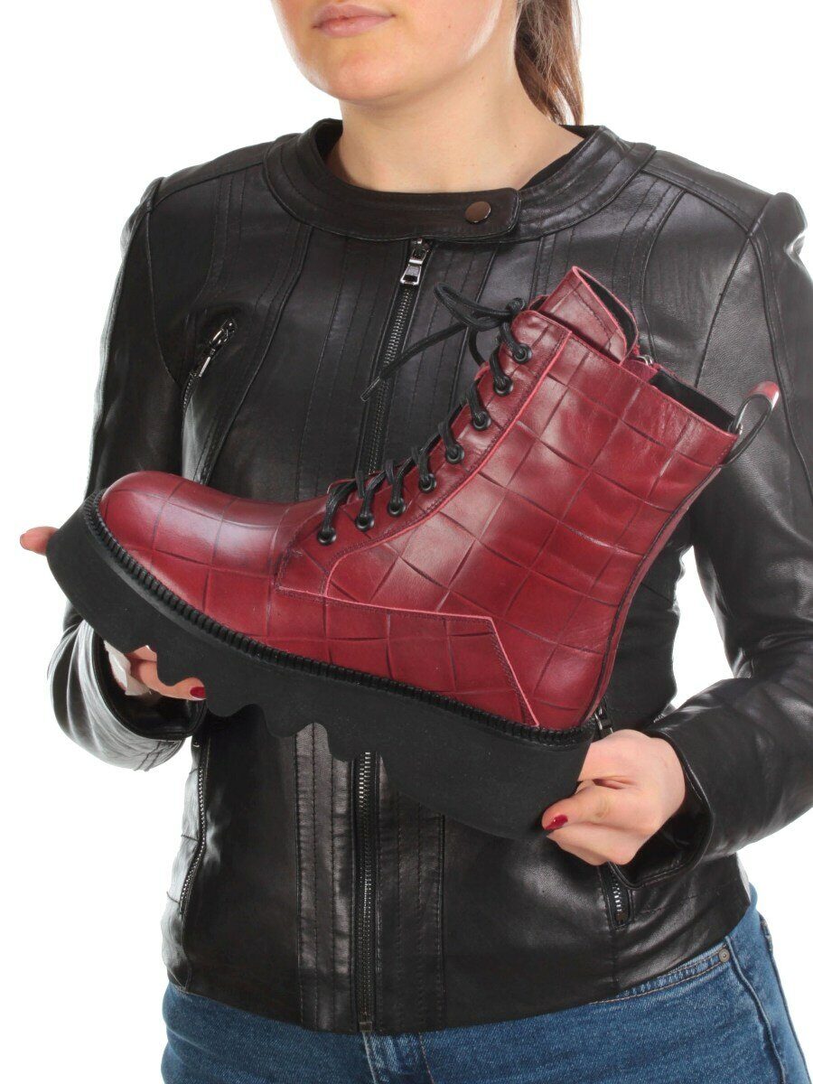 Бордовый Ботинки демисезонные женские (натуральная кожа, байка)