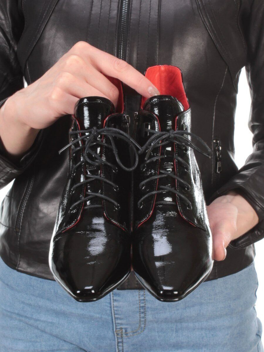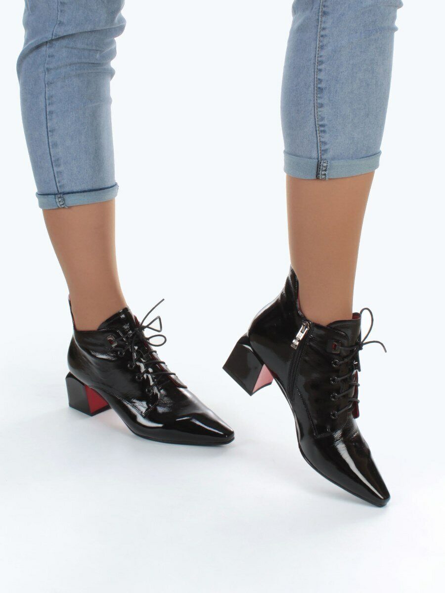 Черный Ботильоны женские лакированные з натуральной кожи с байкой