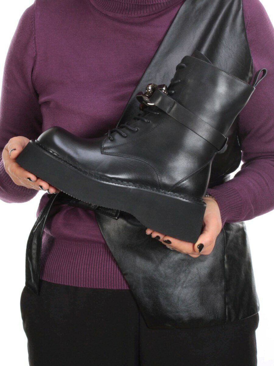 Черный Ботинки демисезонные женские (натуральная кожа, байка)
