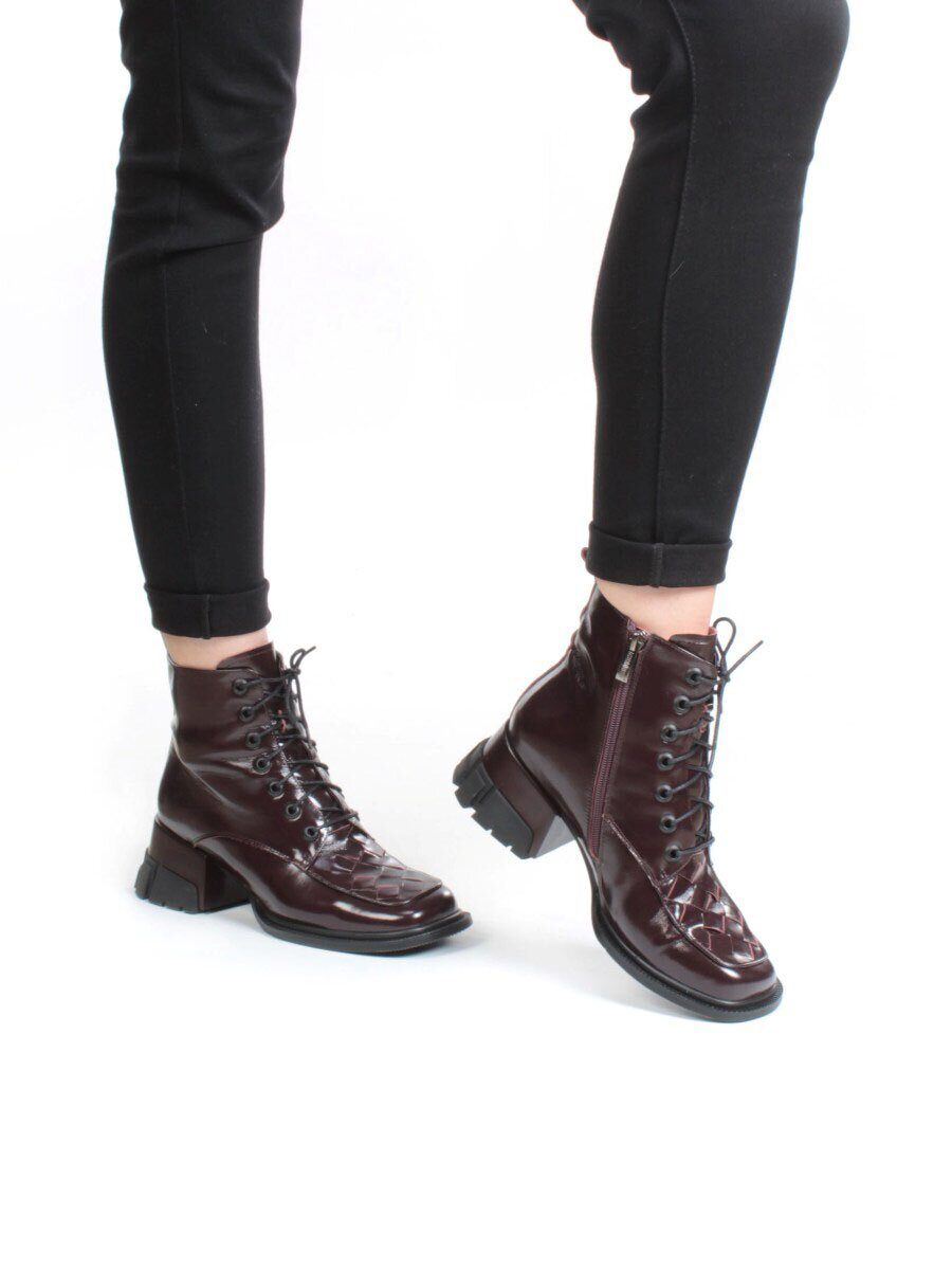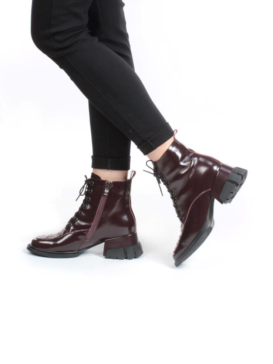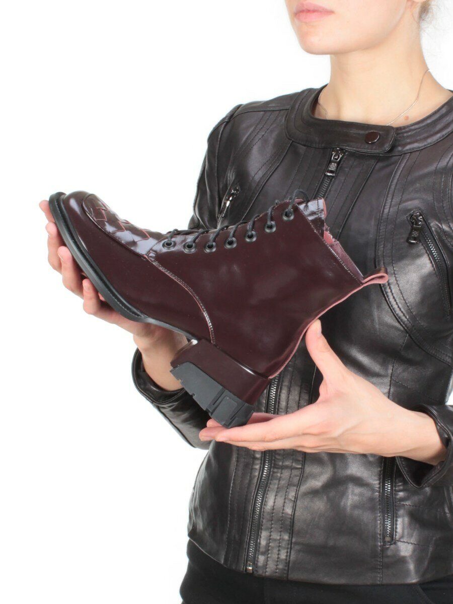 Бордовый Ботинки демисезонные женские (натуральная кожа, байка)