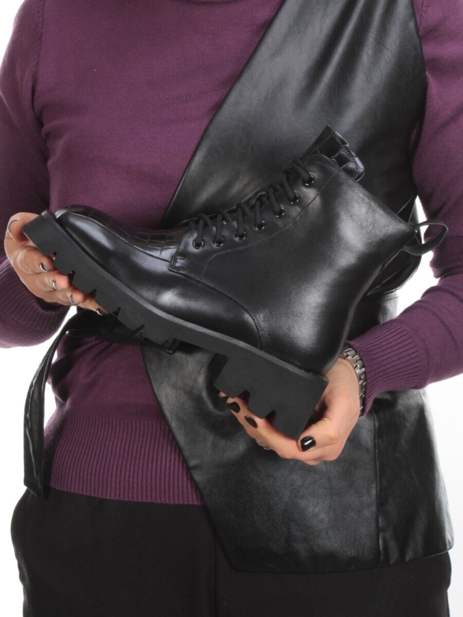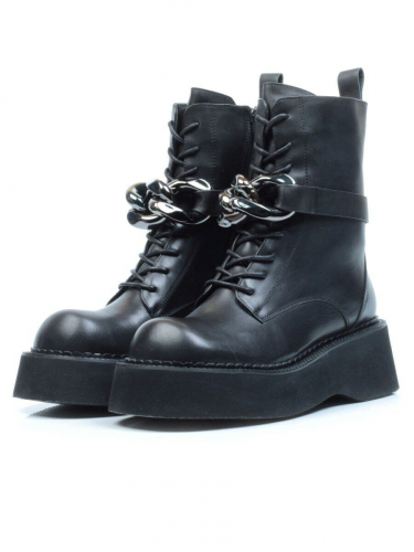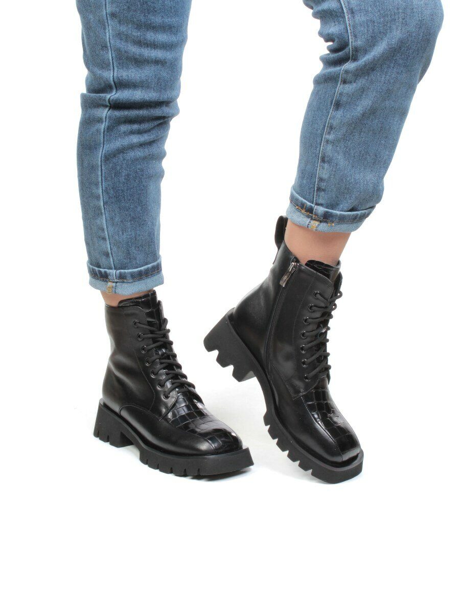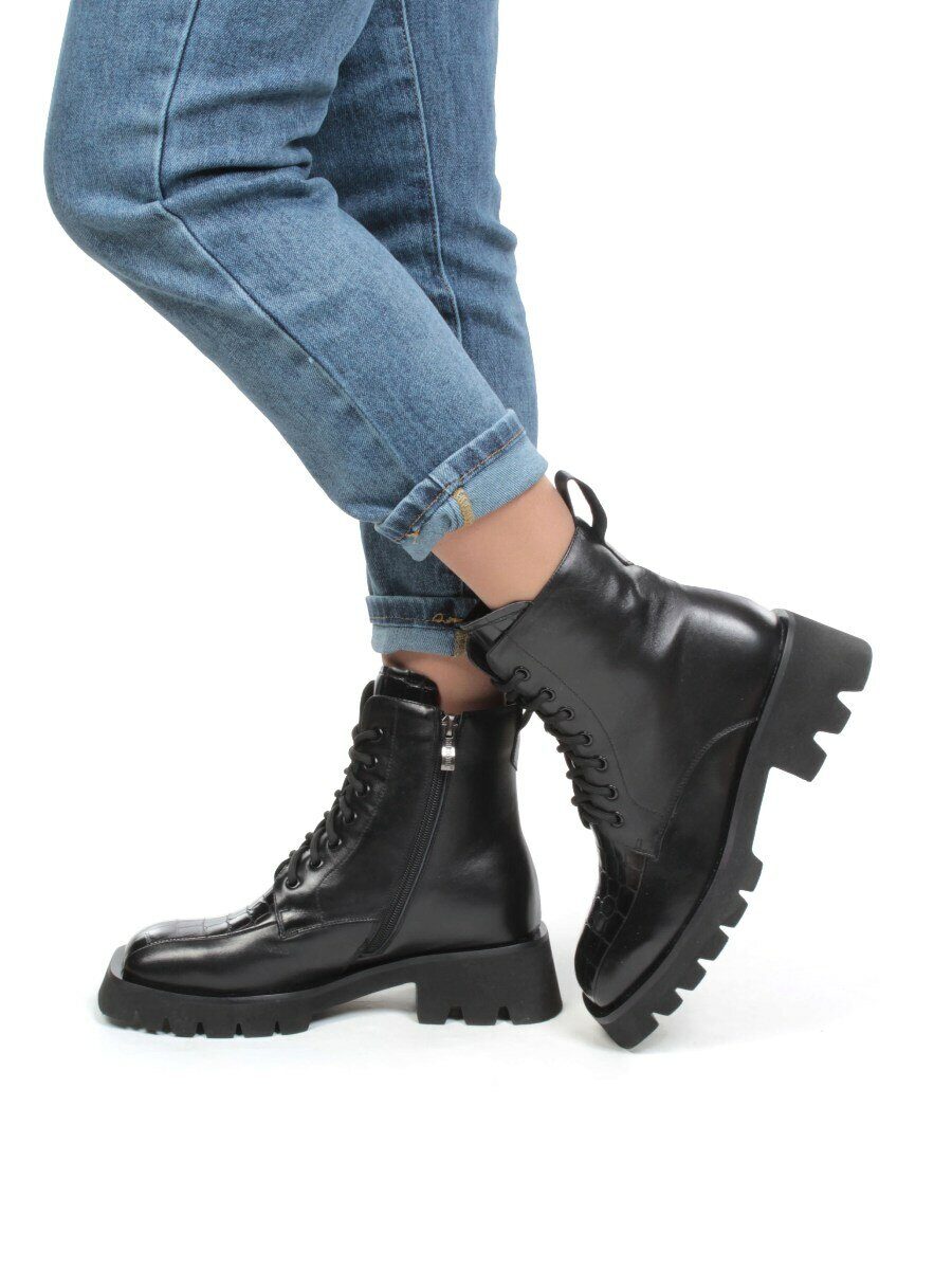 Черный Ботинки демисезонные женские (натуральная кожа, байка)