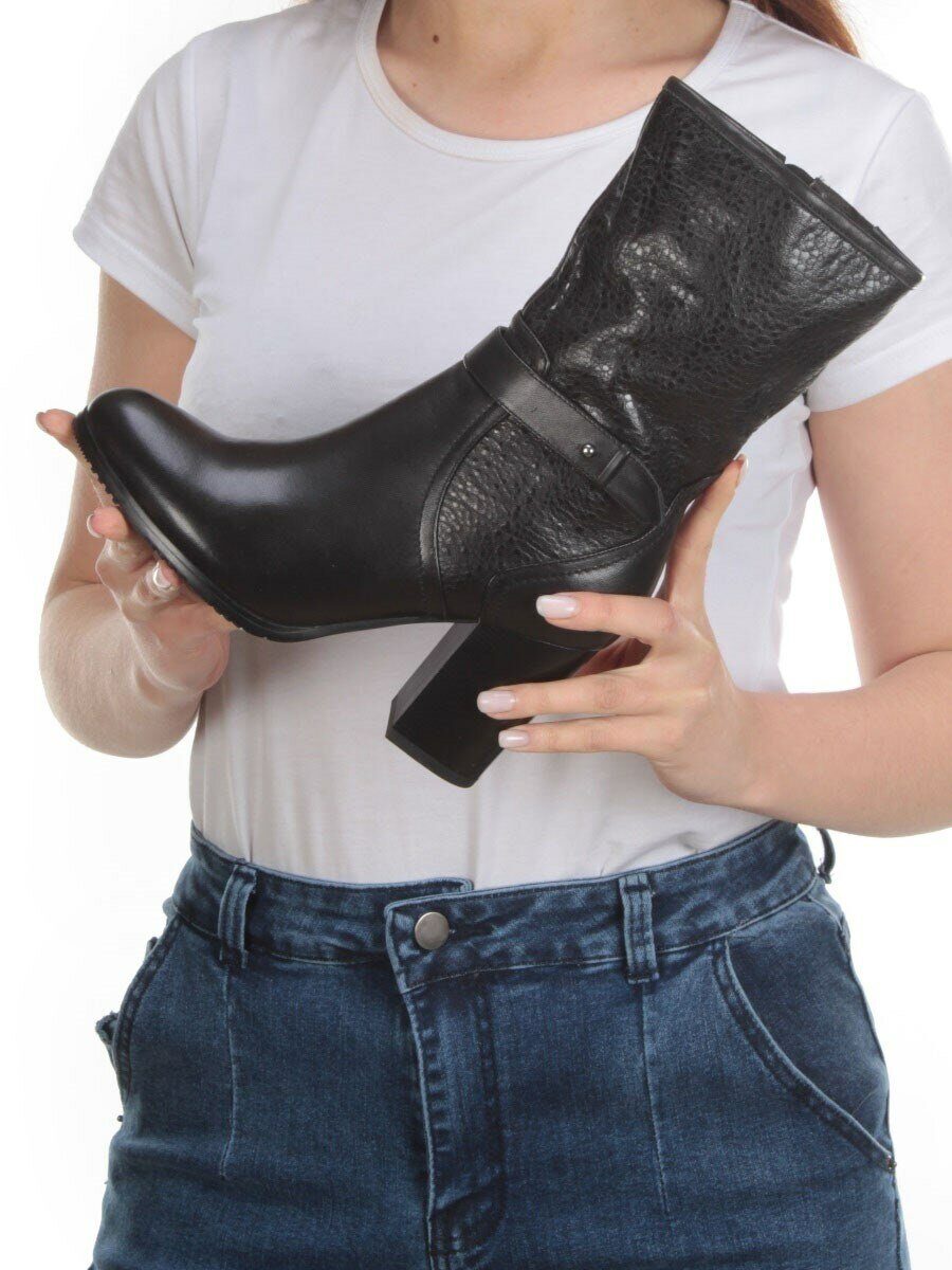 Черный Ботинки женские (натуральная кожа, байка)