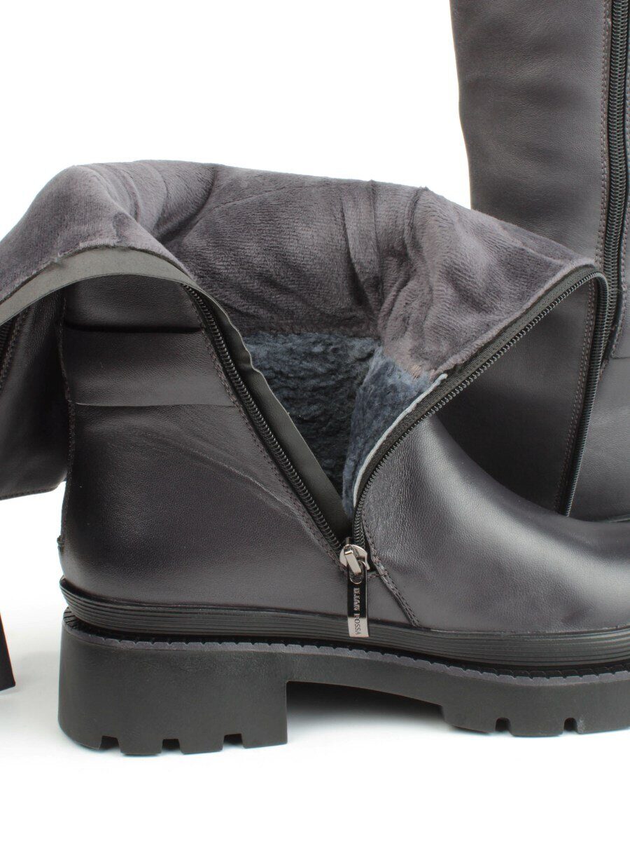Черный Сапоги зимние женские из натуральной кожи с натуральным мехом и байкой