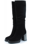 Черный Сапоги зимние женские из натуральной кожи с натуральным мехом