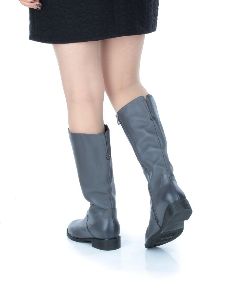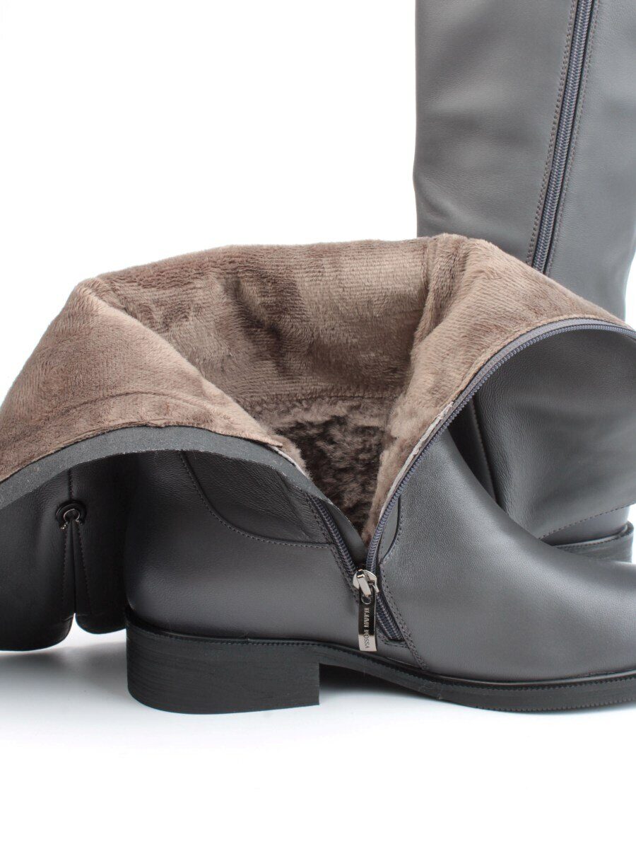 Темно-серый Сапоги зимние женские из натуральной кожи с натуральным мехом и байкой