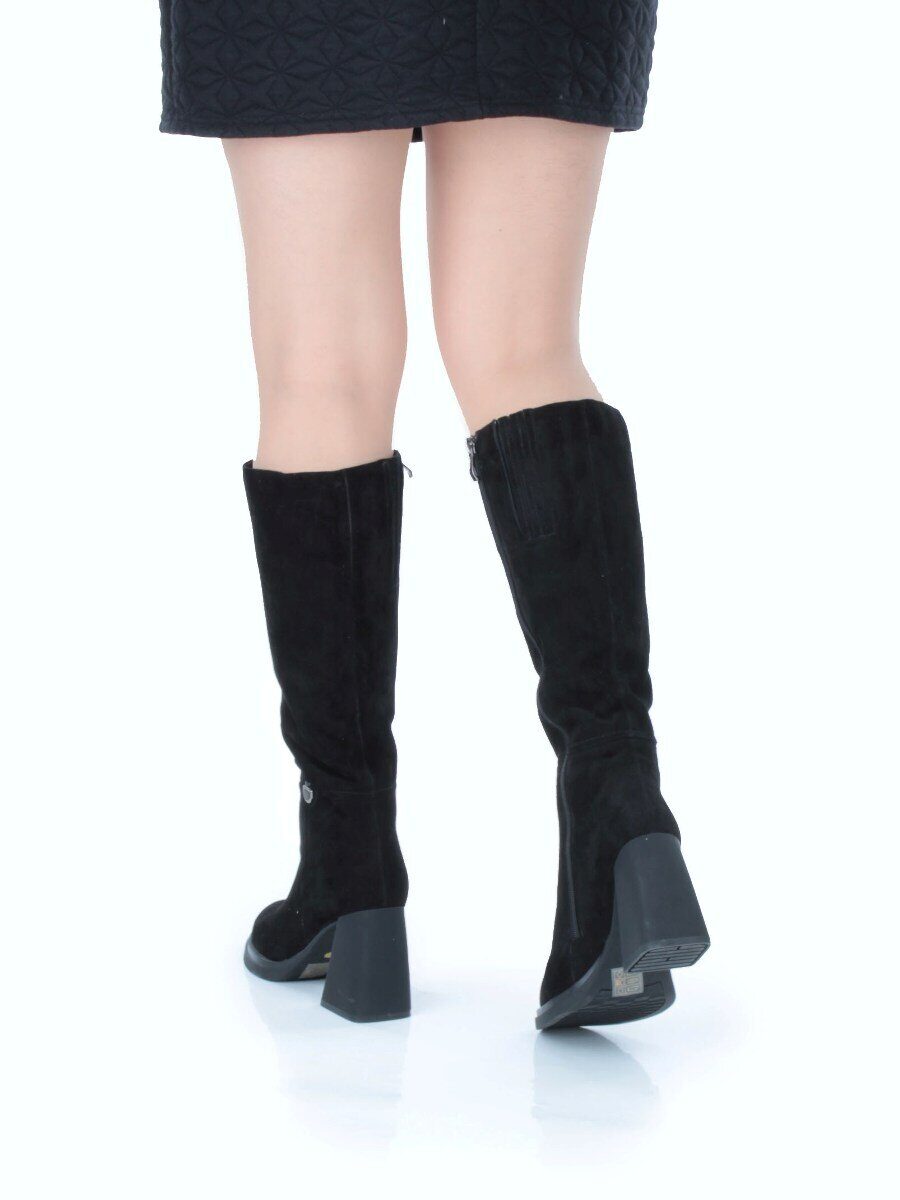 Черный Сапоги зимние женские из натуральной замши с натуральным мехом
