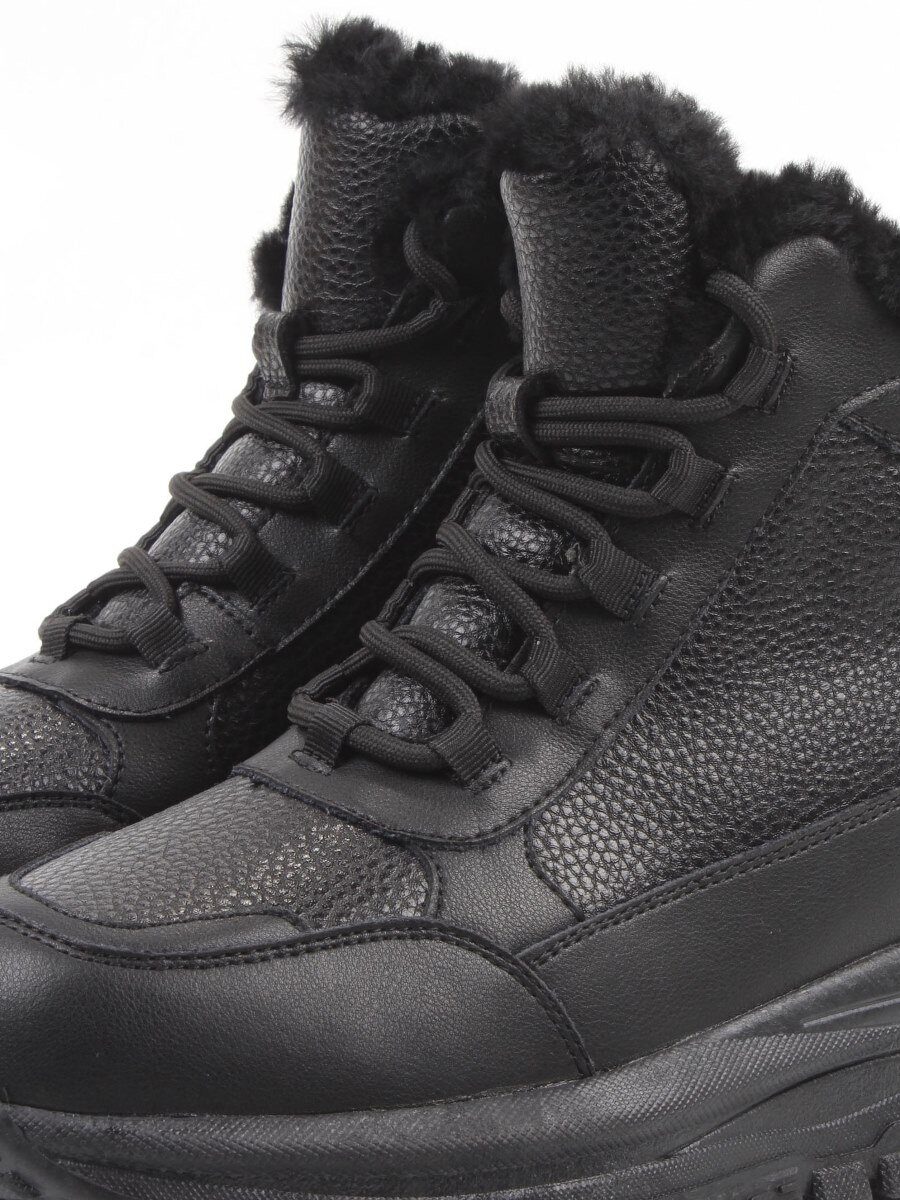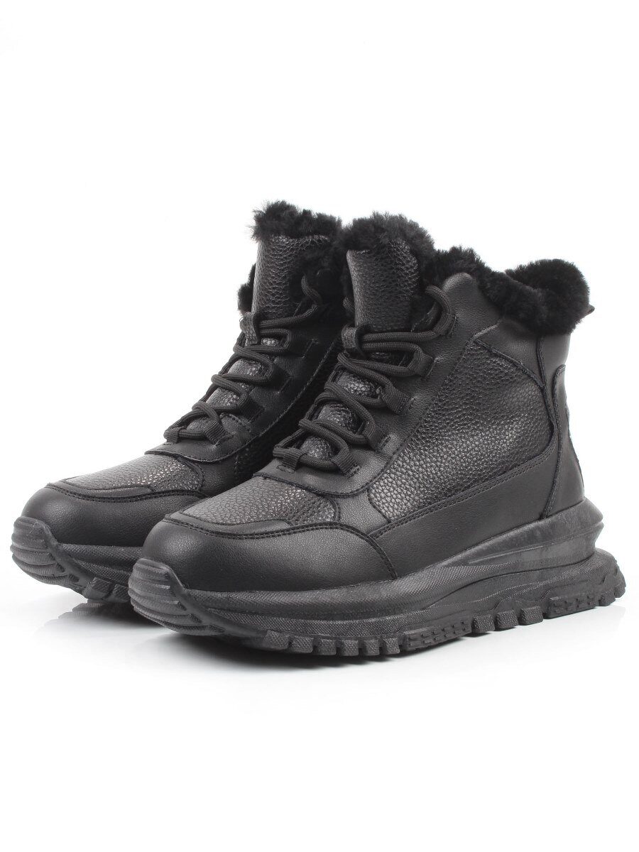 04-WG044-1M BLACK Кроссовки зимние женские (натуральная кожа, 100% шерсть)