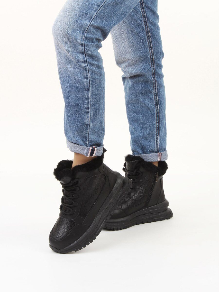 Черный Кроссовки зимние женские (натуральная кожа, 100% шерсть)