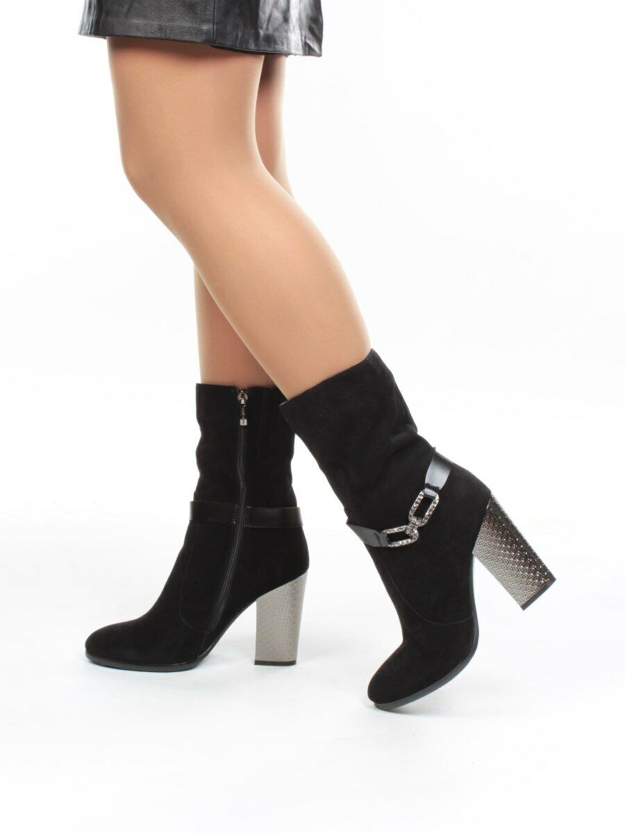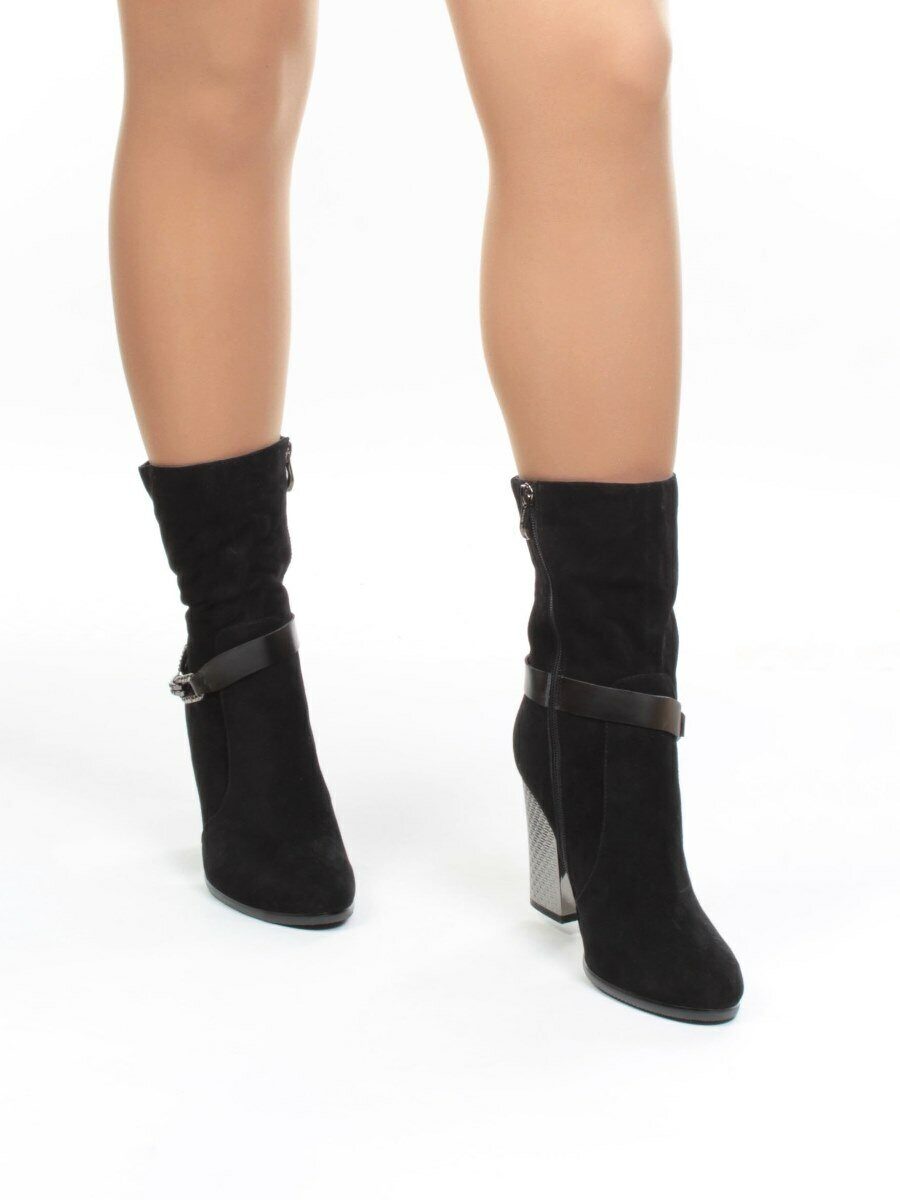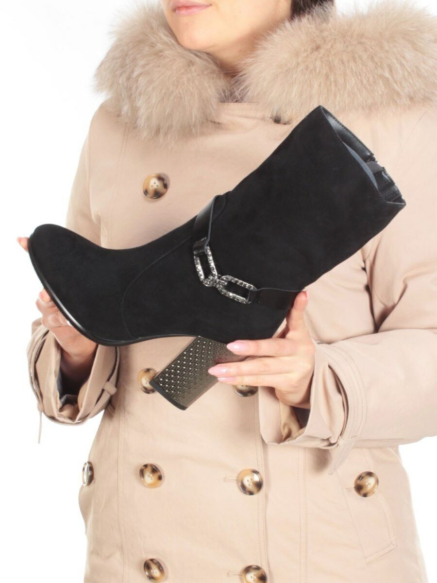 Черный Полусапоги зимние женские из натуральной замши с мехом