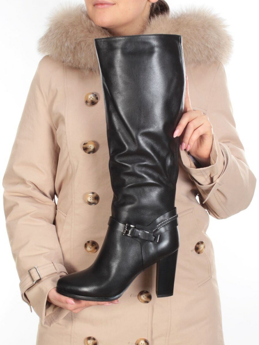 Черный Сапоги зимние женские из натуральной кожи с мехом