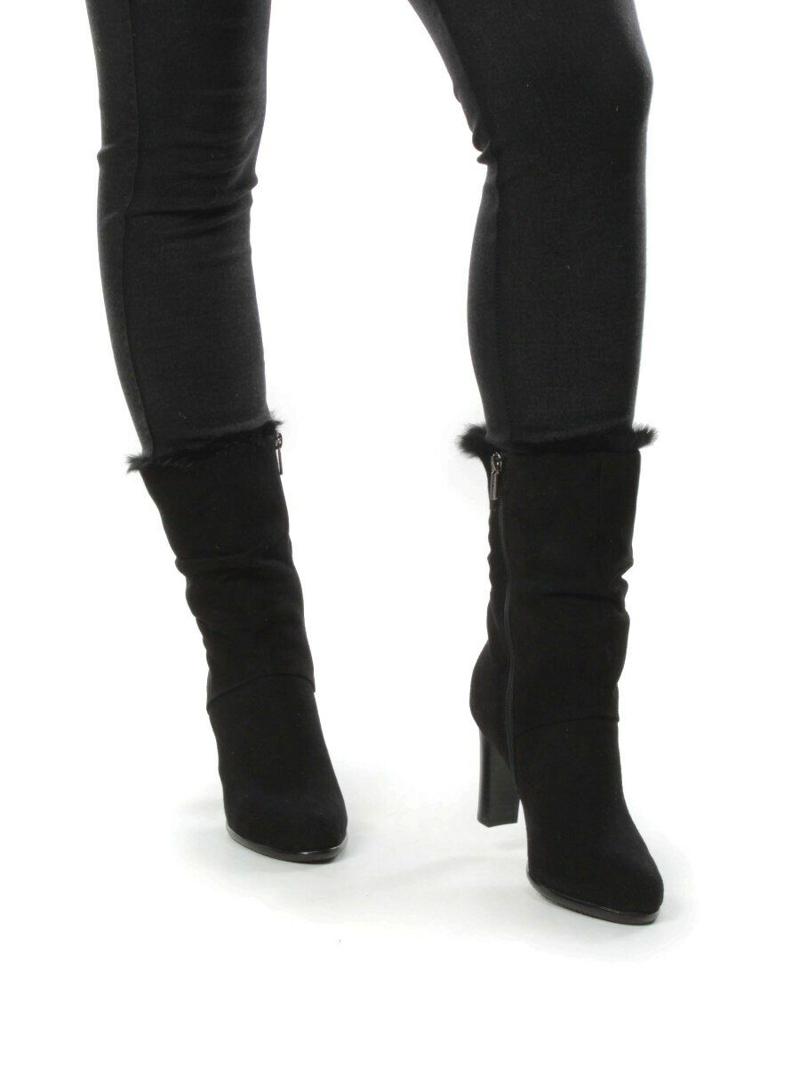 Черный Полусапоги зимние женские из натуральной замши с мехом