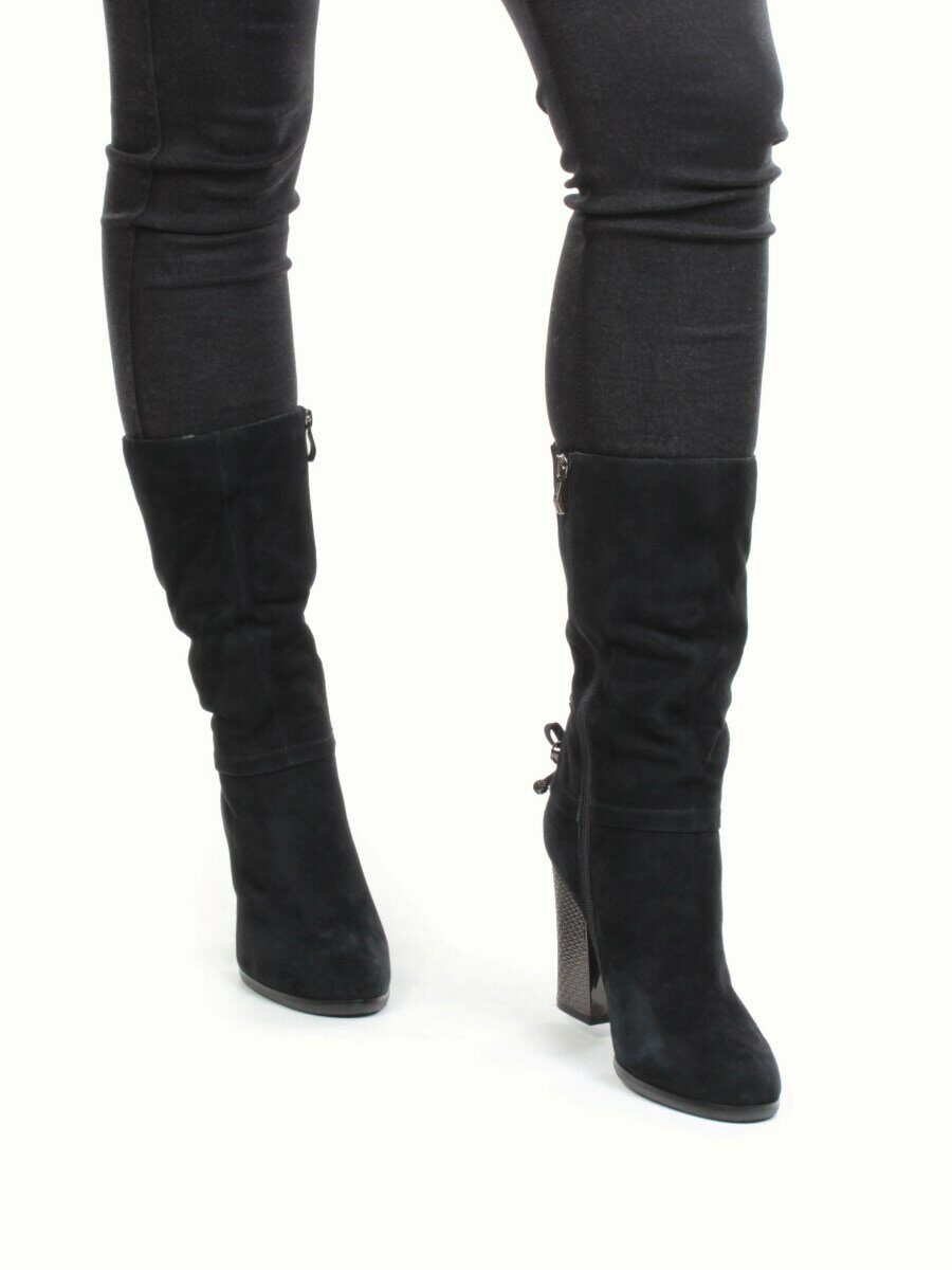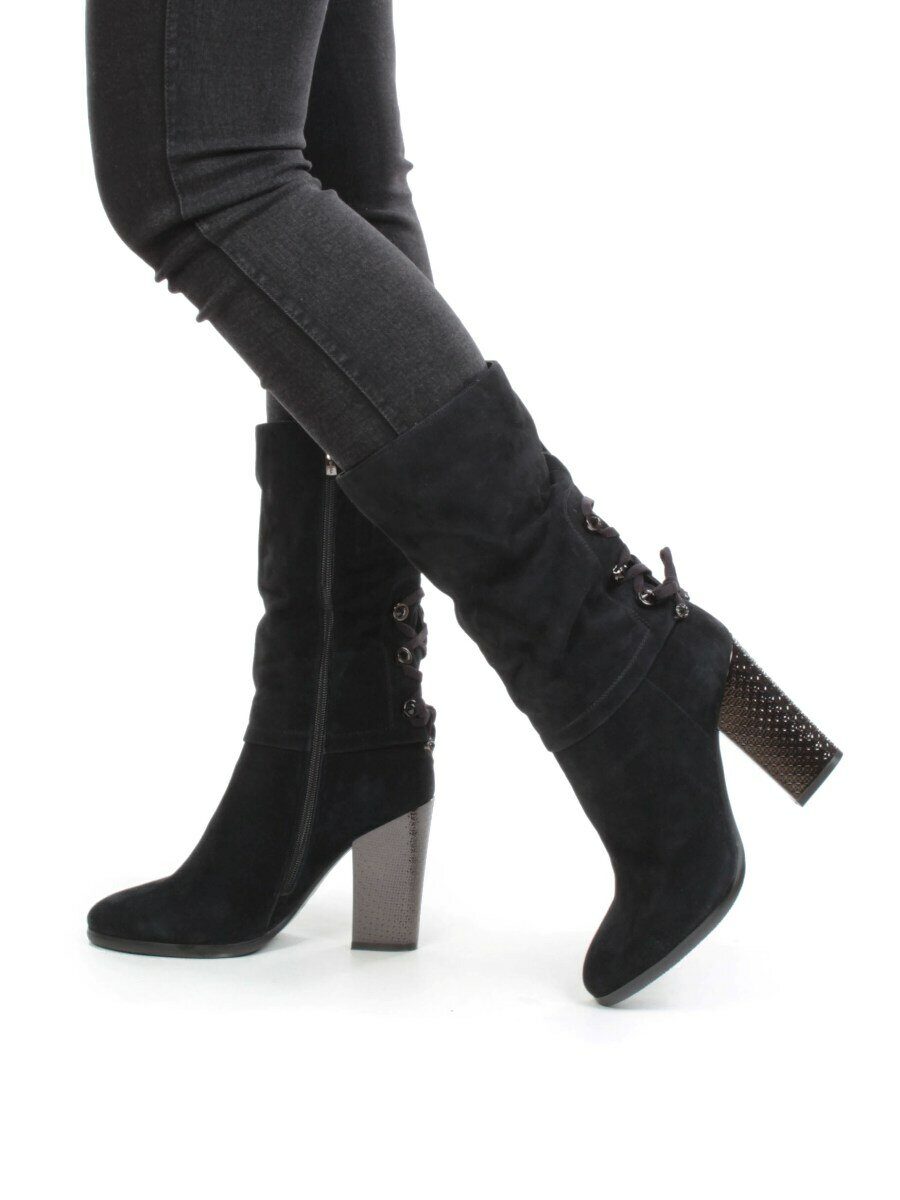 Темно-синий Полусапоги зимние женские из натуральной кожи с мехом