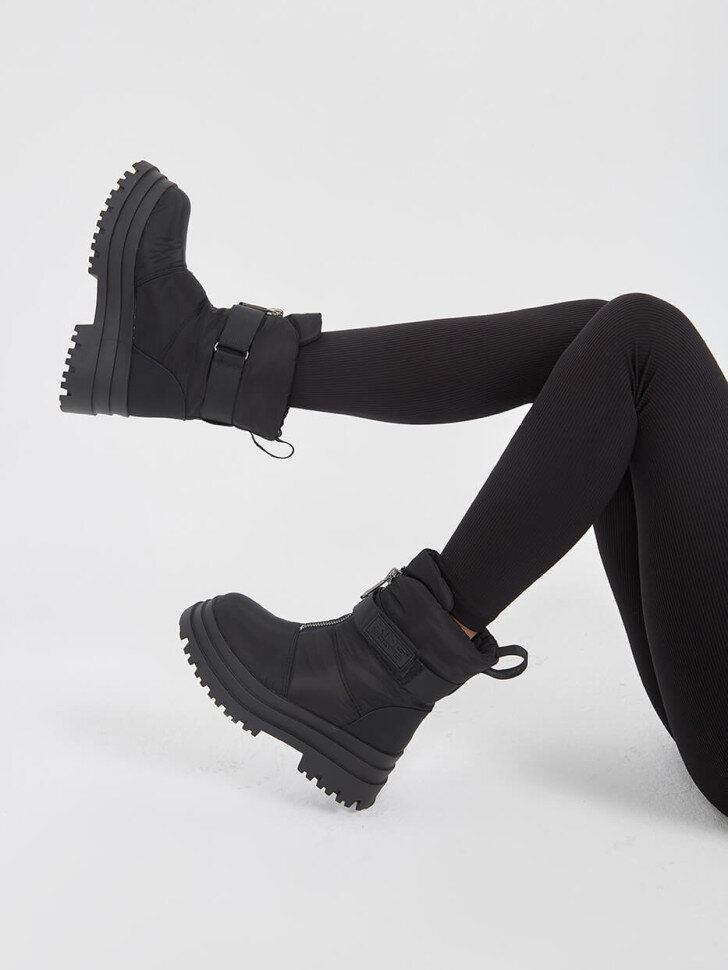 Описание Теплые женские дутики из коллекции немецкого бренда KING BOOTS - модная и стильная обувь, которая идеально подойдет для зимних прогулок и активного отдыха на свежем воздухе. Молодежные дутыши в черном цвете украшены декоративной молнией спереди и липучкой с логотипом бренда, созданы из материалов премиум - качества: верх - мягкая влагоотталкивающая ткань (нейлон), подкладка и стелька - плотная и износостойкая, выполнены из качественного натурального шерстяного меха. Особенность овечьей шерсти - отличное поглощение и испарение влаги при сохранении сухости и воздухопроницаемости: подкладка и стелька «дышащие», а значит ножка в оптимально комфортных условиях. Красивые влагостойкие сапожки прекрасно подойдут для стопы любой полноты: широкой, средней и узкой, высокая массивная тракторная подошва препятствует скольжению, а значит, вы будете уверенно себя чувствовать на улице. Стильные ботинки представлены в больших и маленьких размерах, чтобы их с комфортом могли носить и женщины и подростки. Это отличный выбор, чтобы наслаждаться теплой, стильной и удобной обувью этой зимой!