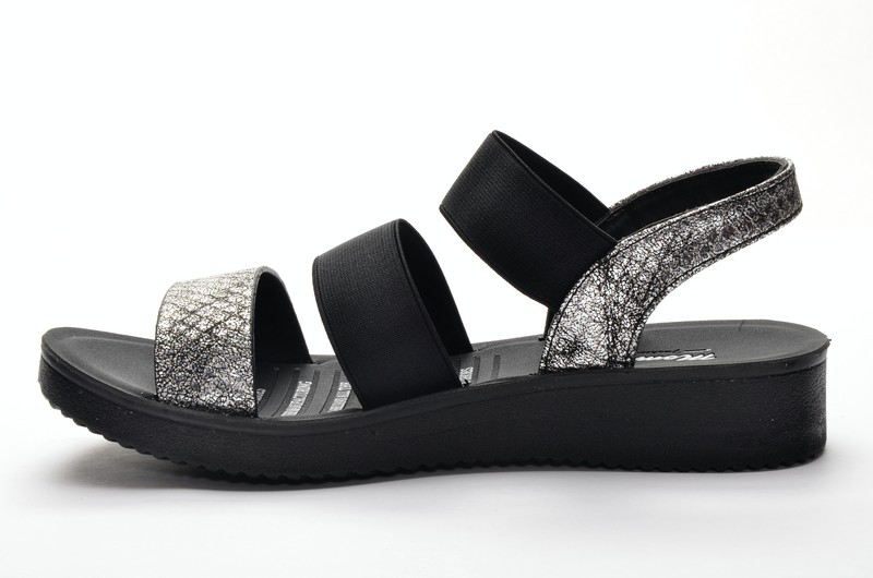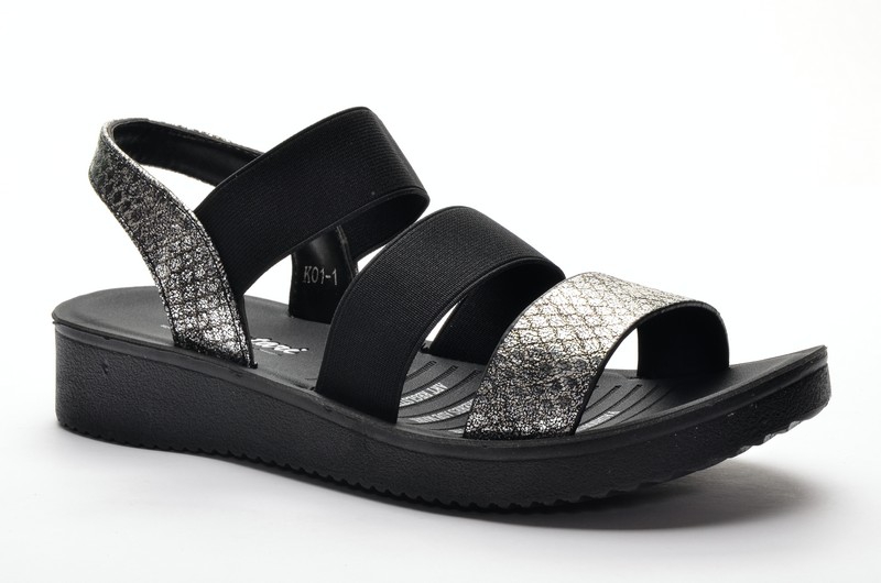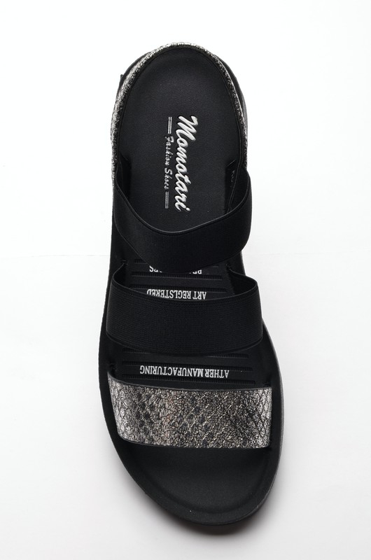 Momotari K01-1 Сандалии женские чер-серебр текстиль+иск кожа