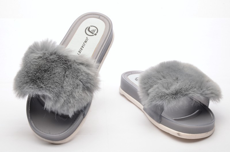 Fashion SB0888 Обувь пляжная женская сер иск мех