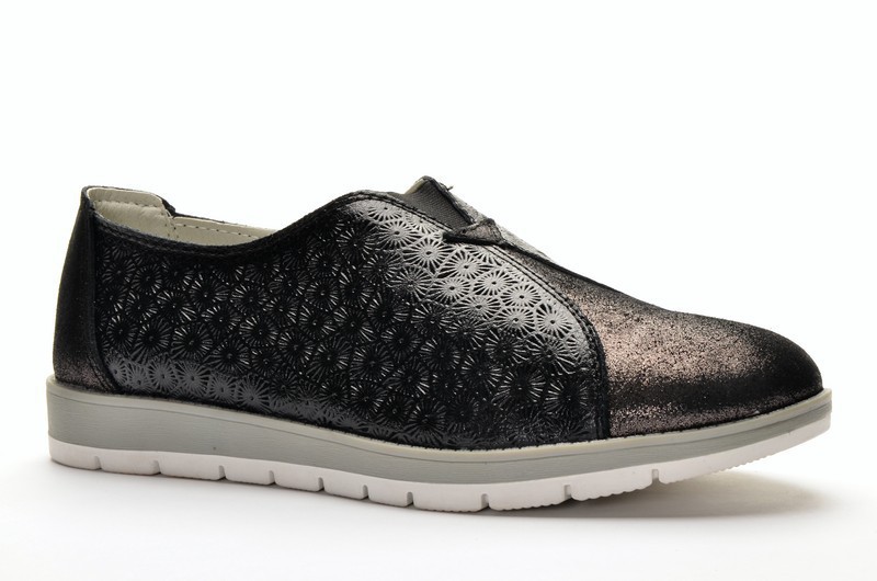 Ribu 67075 Слипоны женские чер-бронз нат (прессов) кожа с лазерной обработкой