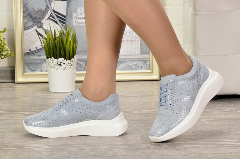 Ribu 67287-2A Ботинки женские св.син-серебр нат (прессов) замша