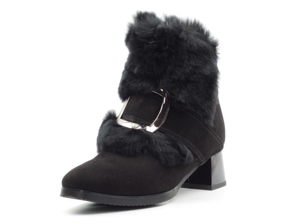 Черный (витрина) Ботинки женские (натуральная замша, натуральный мех)