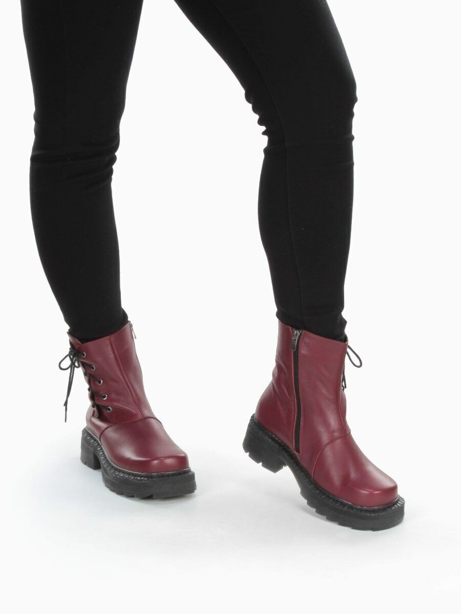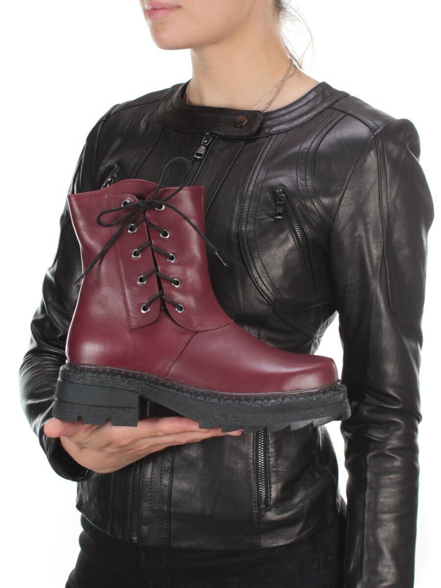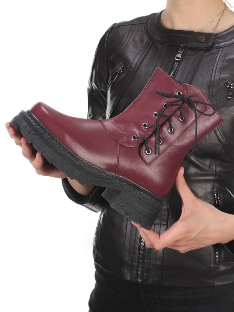 Бордовый Ботинки зимние женские из натуральной кожи с мехом