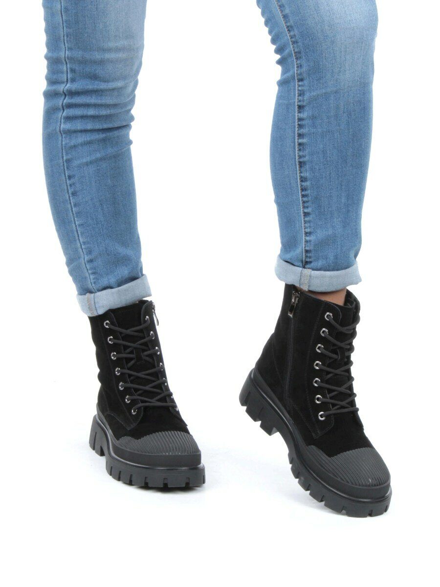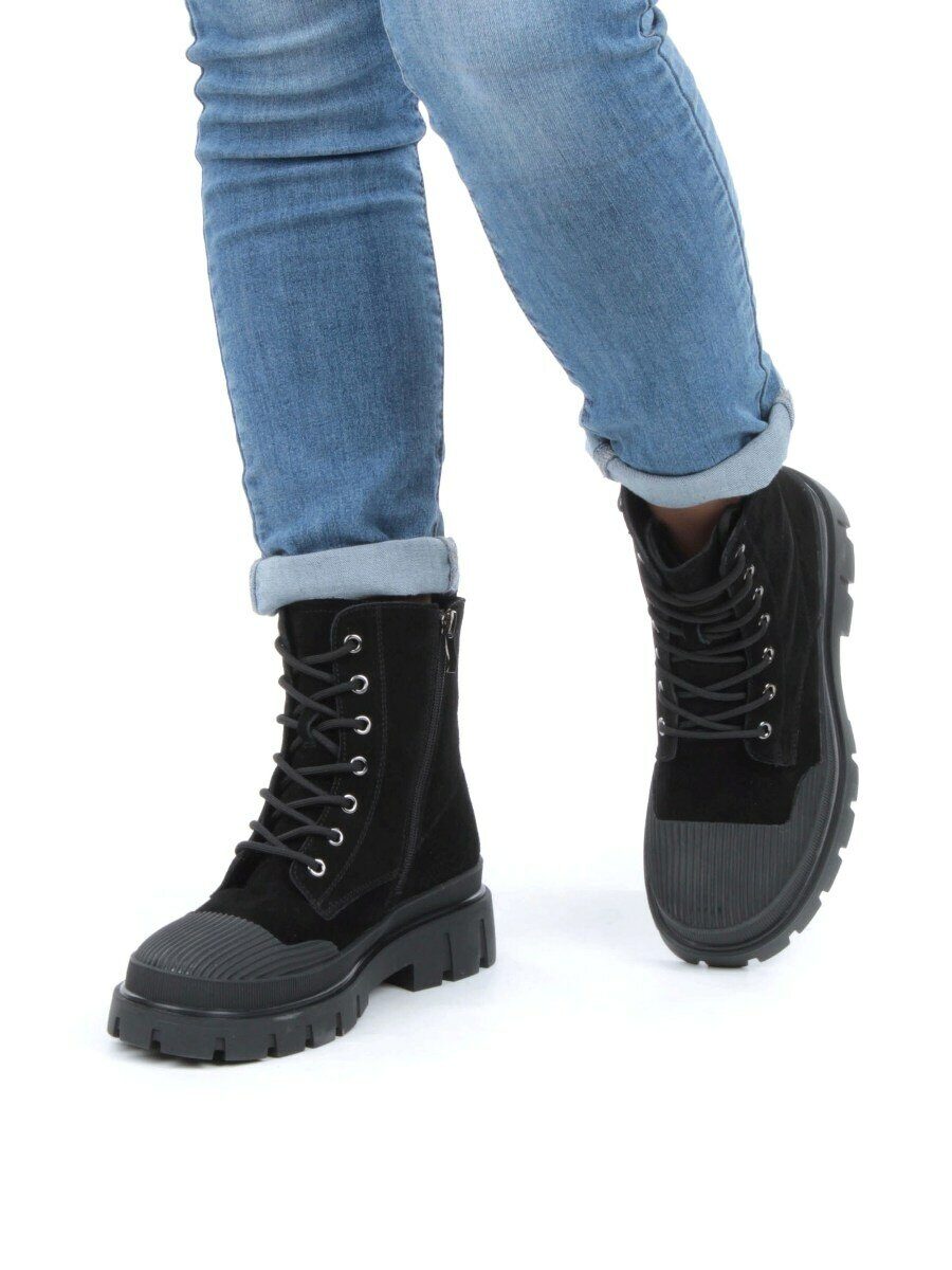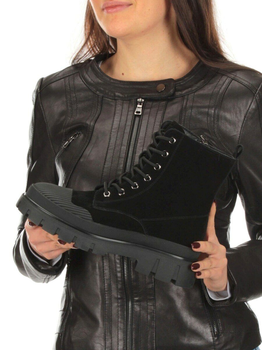 Черный Ботинки зимние женские (натуральная замша, шерсть)