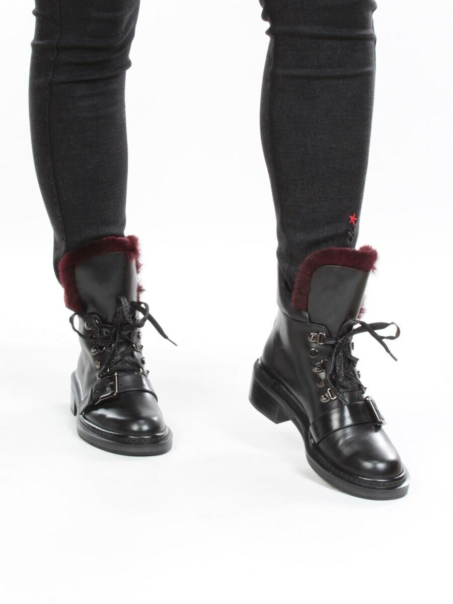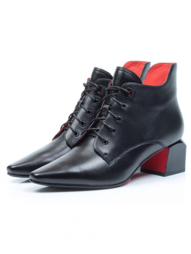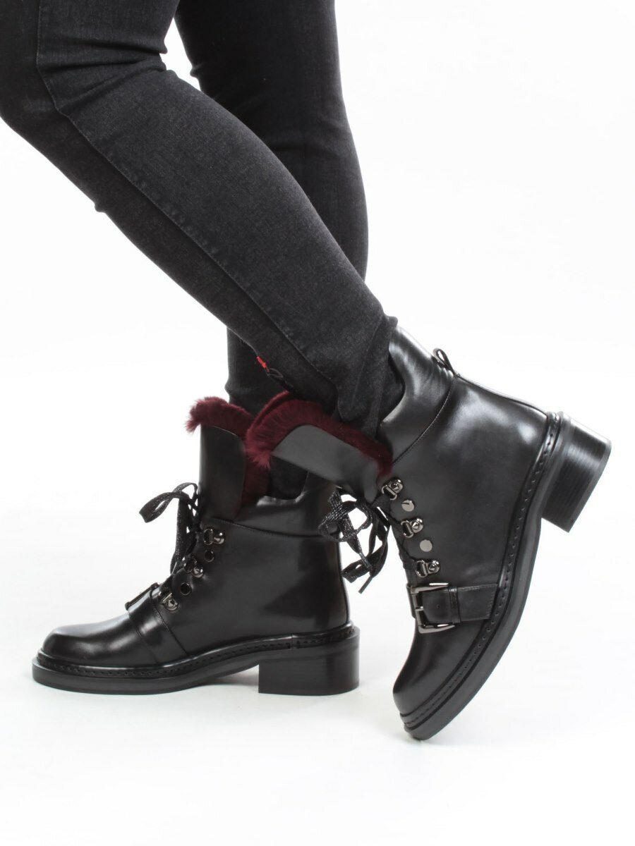 Черный Ботинки демисезонные женские из натуральной кожи с байкой