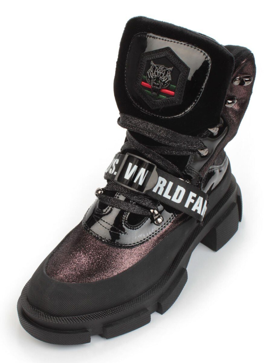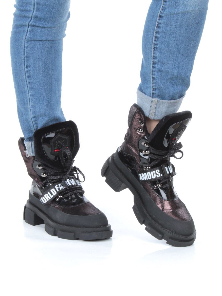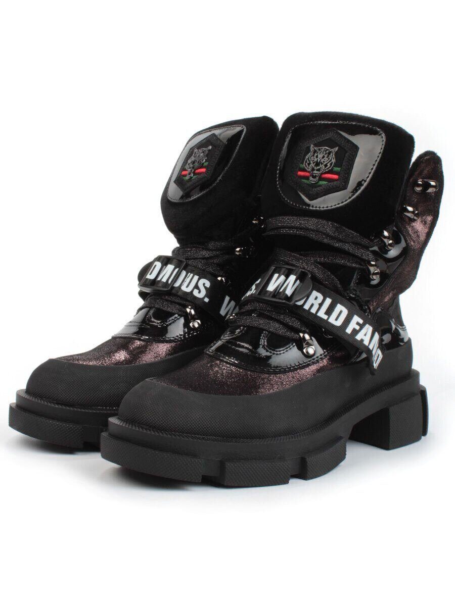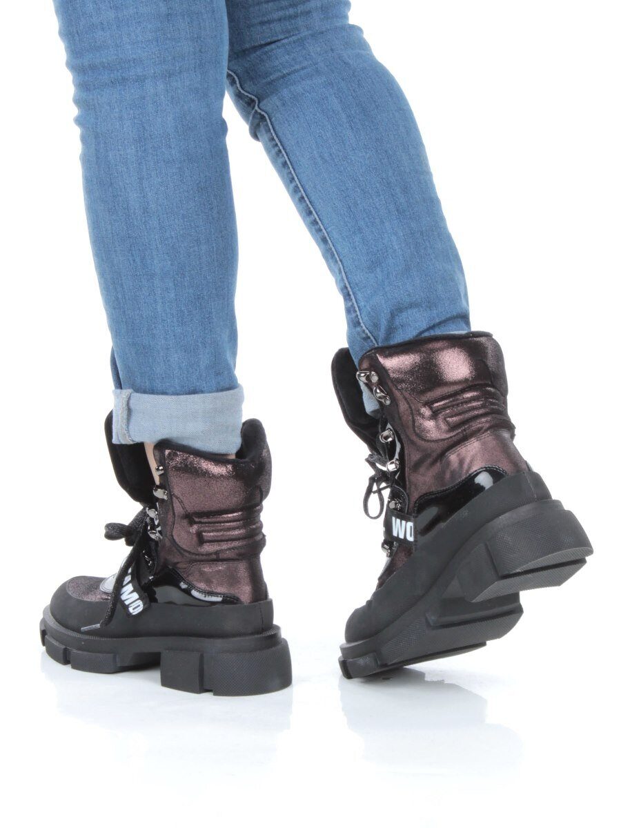 Черный с медным Ботинки демисезонные женские (натуральная кожа, байка)
