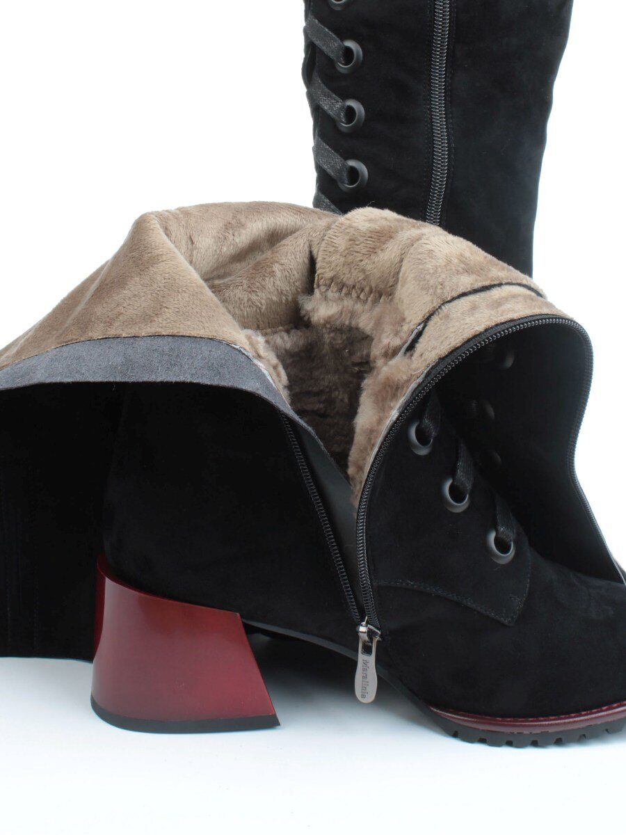 Черный Сапоги зимние женские из натуральной замши с натуральным мехом и байкой (еврозима)