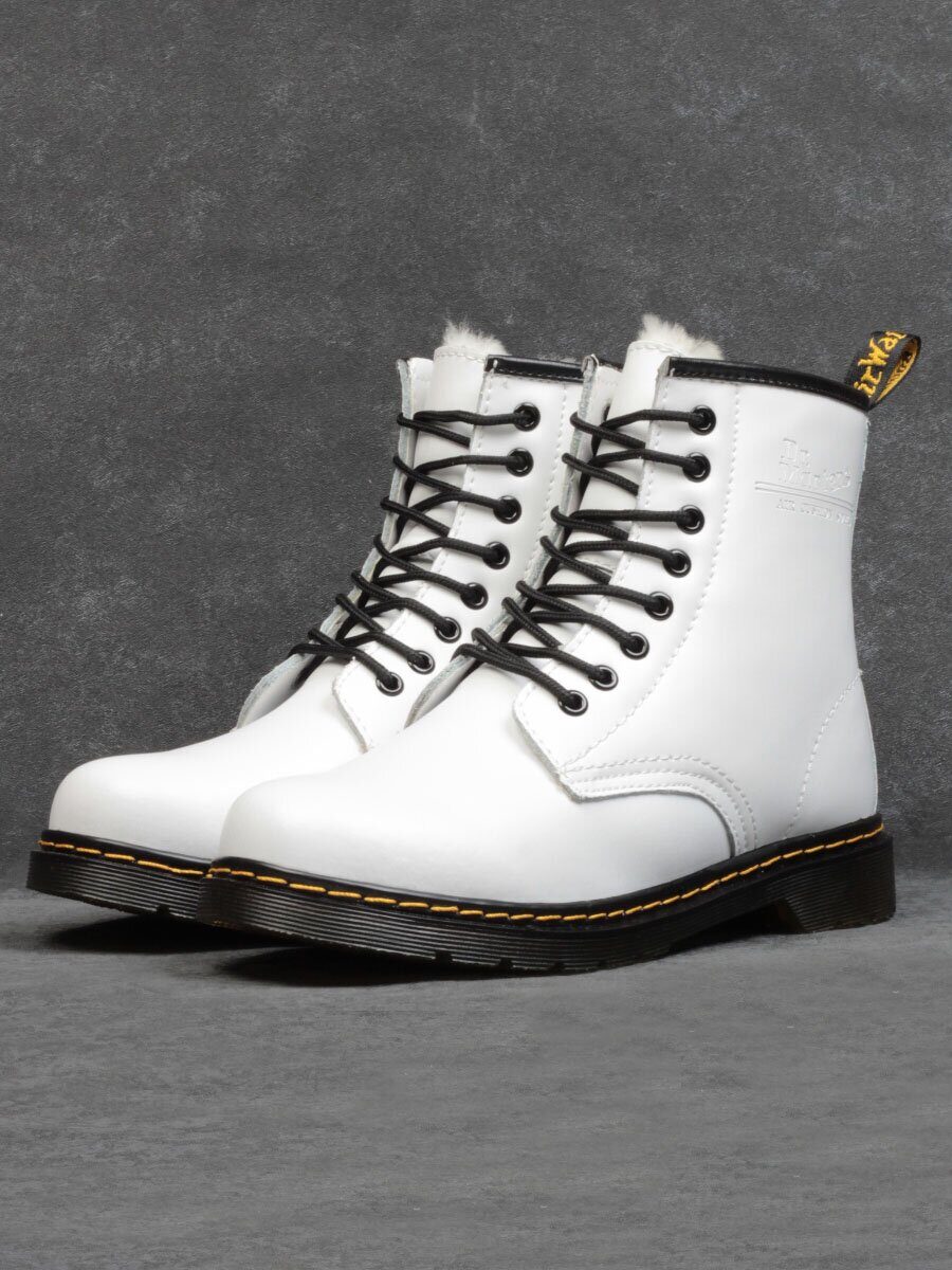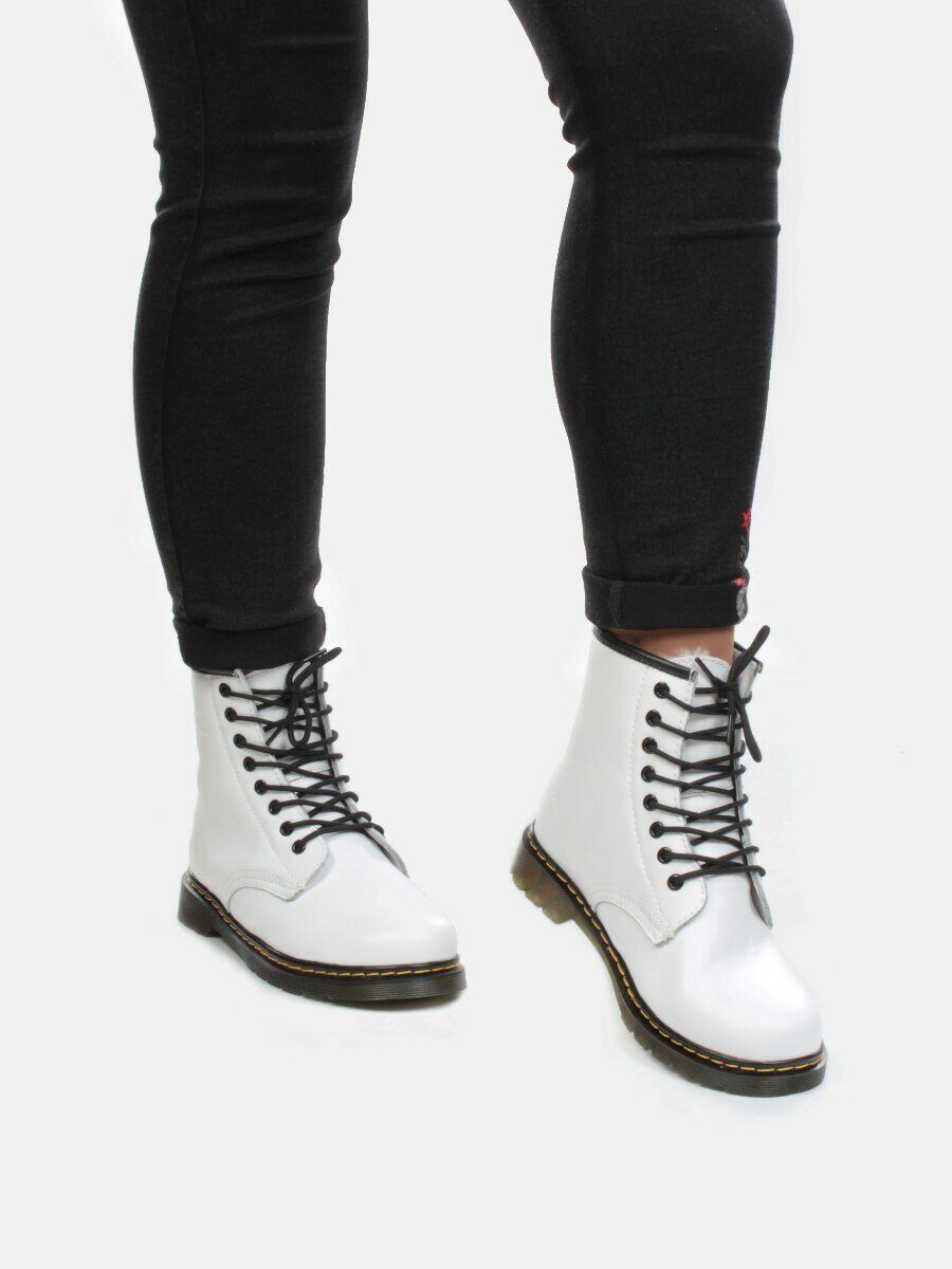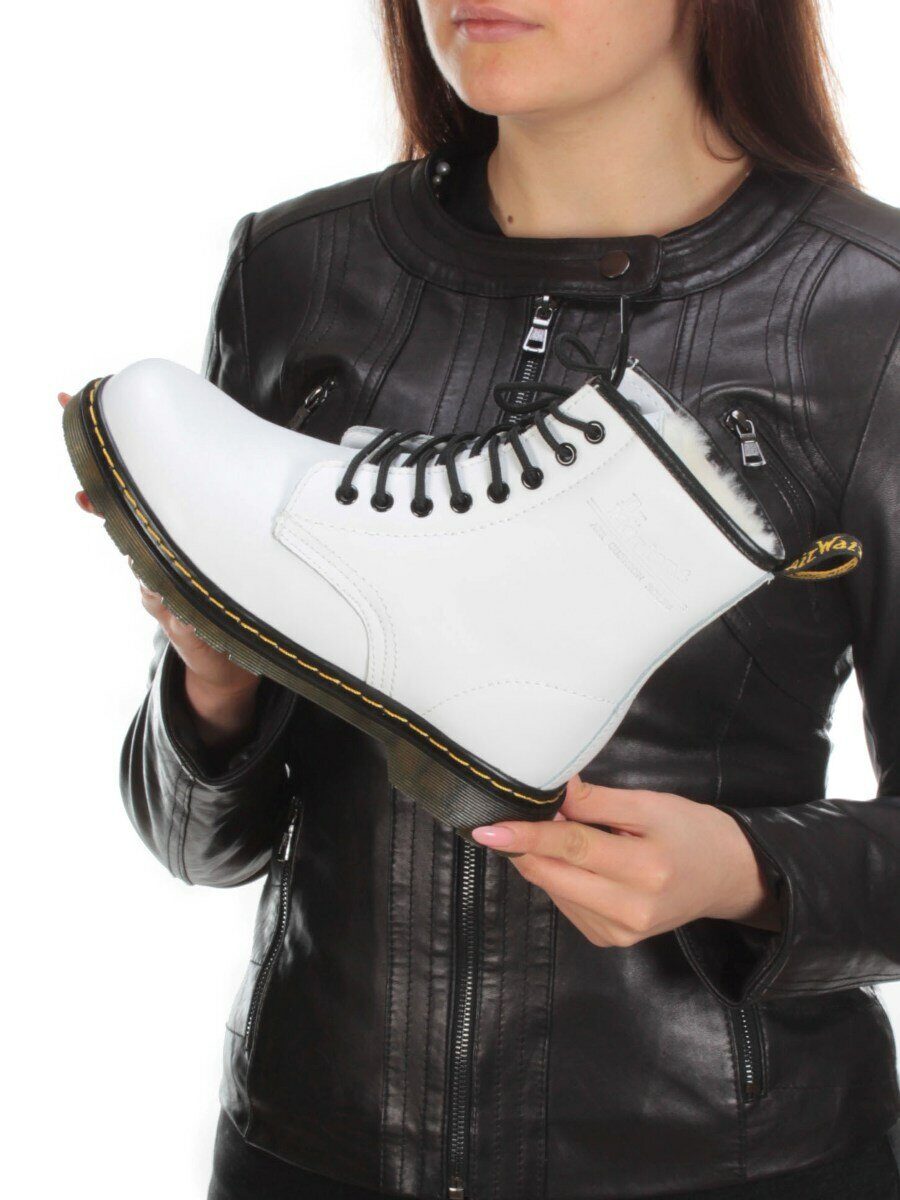 Белый Ботинки зимние женские из натуральной кожи с мехом