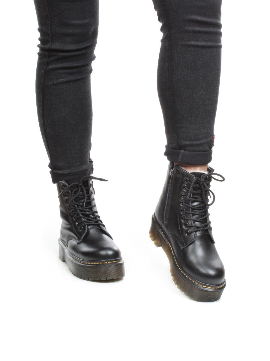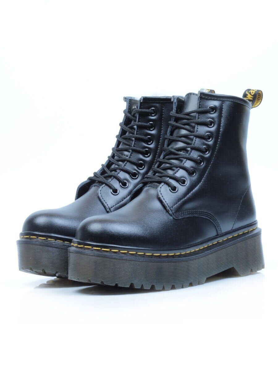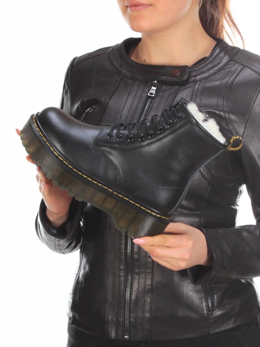 Черный Ботинки зимние женские из натуральной кожи с мехом