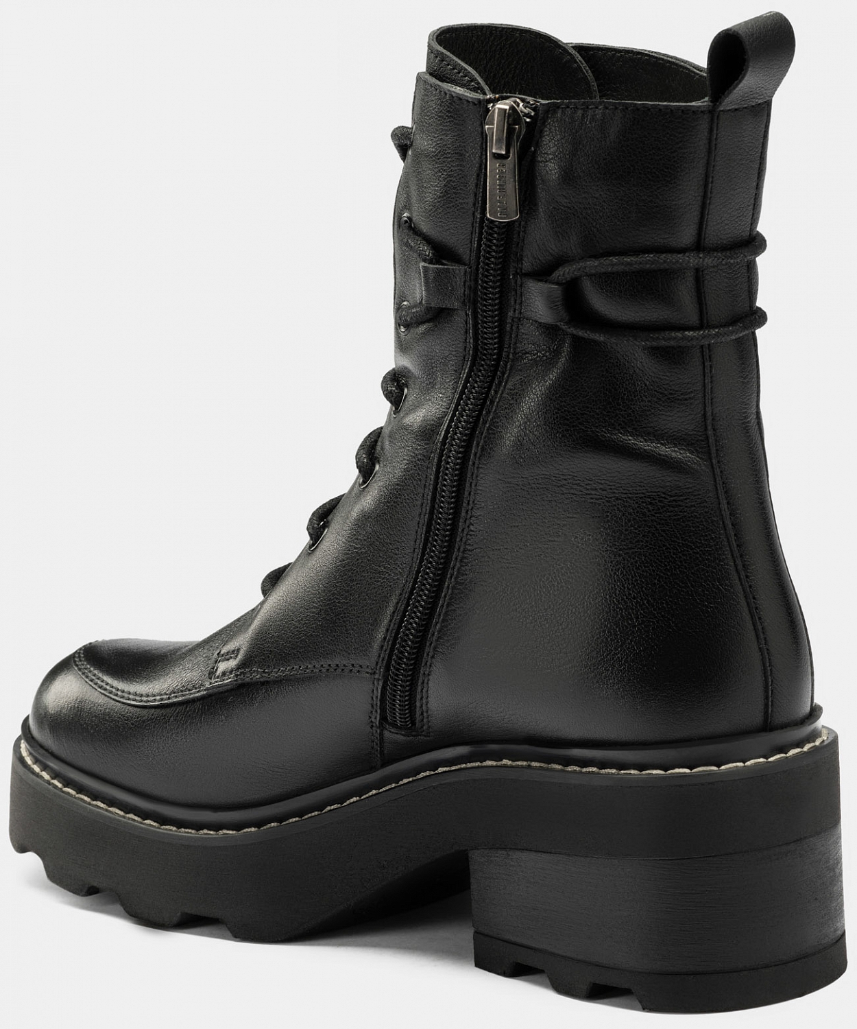Зимние ботинки DOROTHY отличаются высокой рифленой платформой с небольшим каблуком, а также необычной шнуровкой, позволяющей обмотать шнурок вокруг голенища, не расстёгивая молнию. Эта интересная модель понравится тем, кто желает выглядеть стильно даже в морозные зимние дни. Натуральная кожа и шерстяной подклад защитят ноги от холода и воды, а современные материалы подошвы обеспечат устойчивость на снегу и льду.