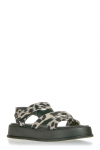 Сандалии женские выполнены из текстиля. Подкладка и стелька из текстиля. Детали: эластичная вставка, декоративные элементы.