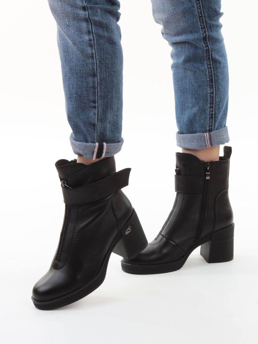 Черный Ботинки демисезонные женские (натуральная кожа, байка)