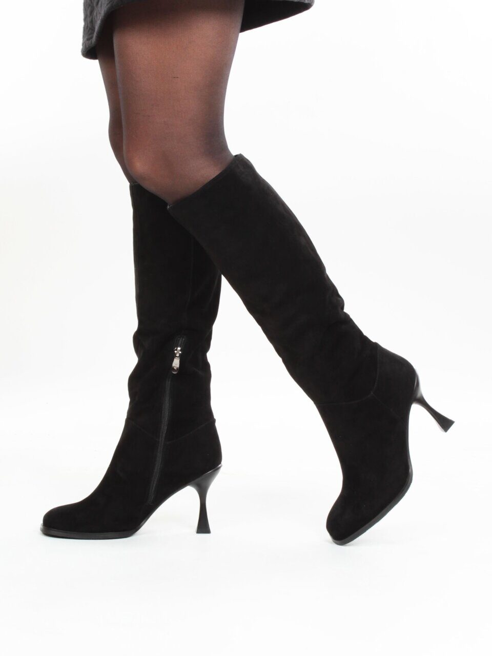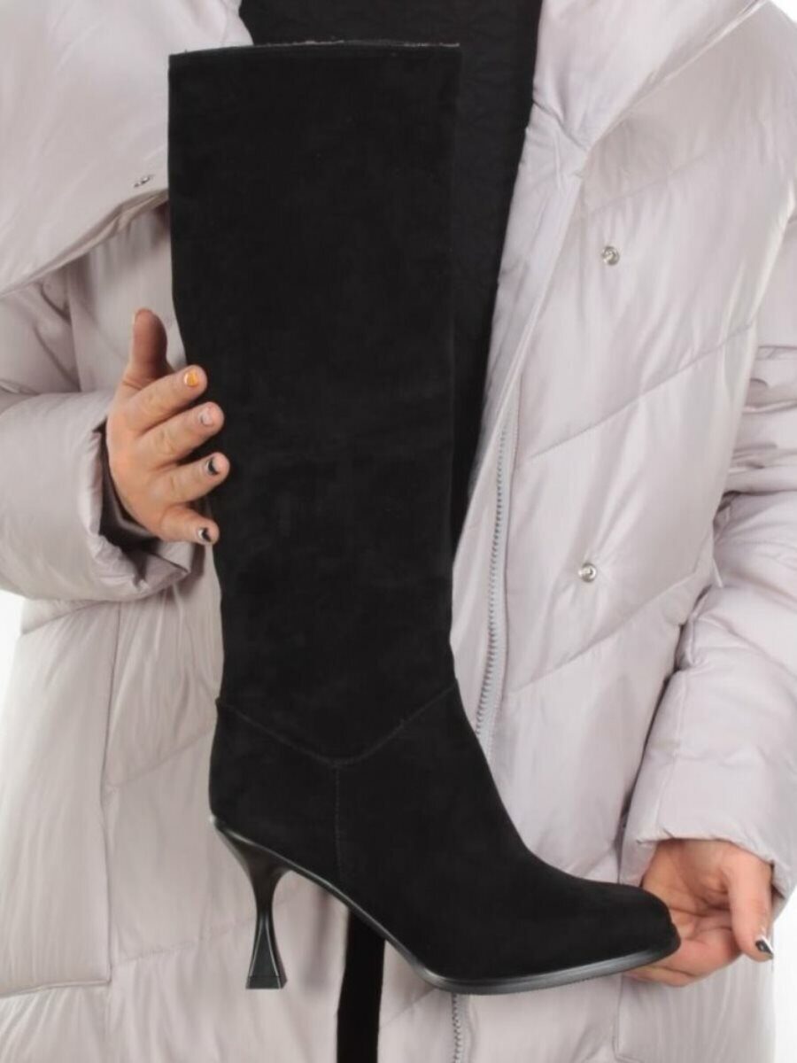 Черный Сапоги зимние женские из натуральной кожи с мехом