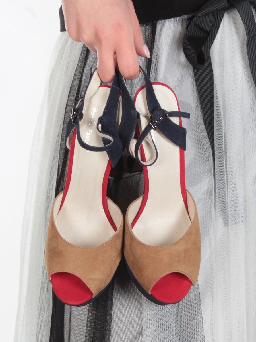Темно-синий с бежевым Туфли женские на высоком каблуке (натуральная замша)