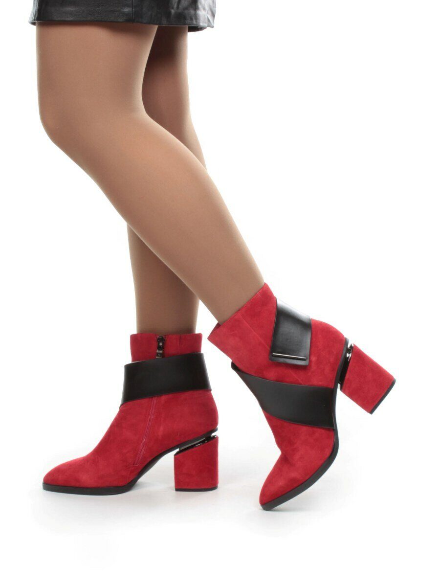 Красный Ботинки зимние женские (натуральная замша, натуральный мех)