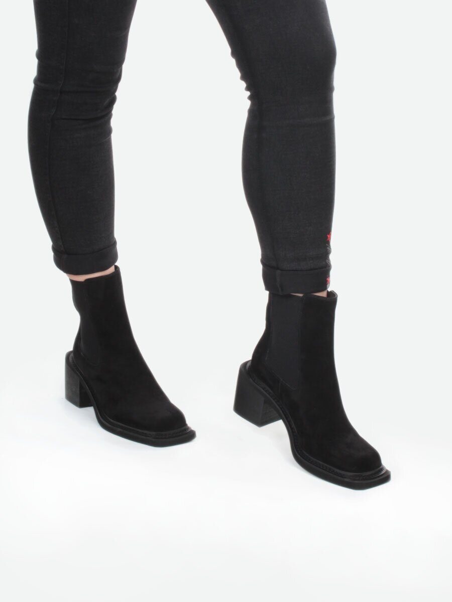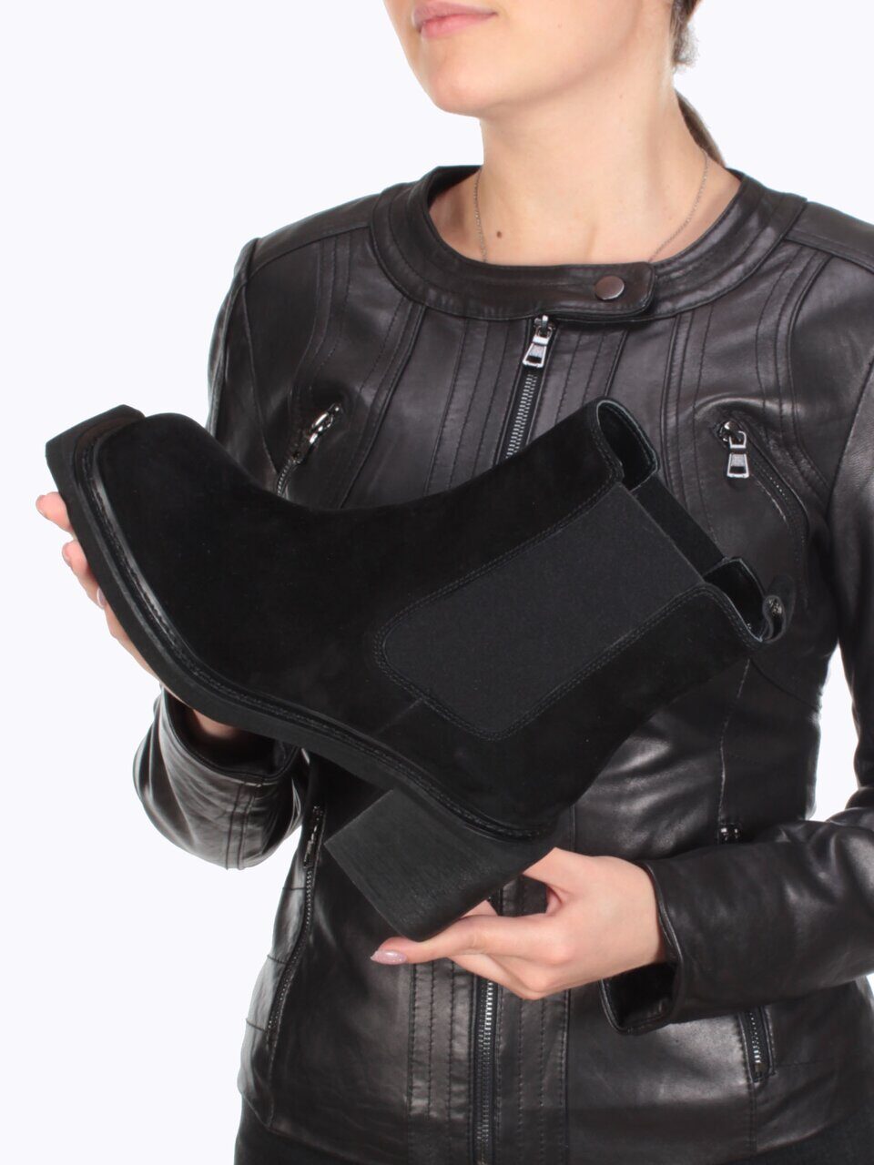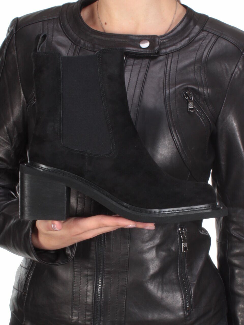 Черный Ботинки зимние женские из натуральной замши с мехом