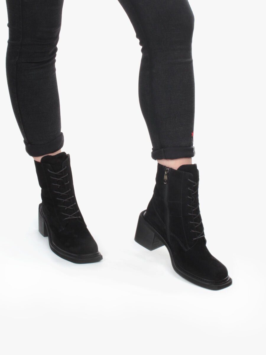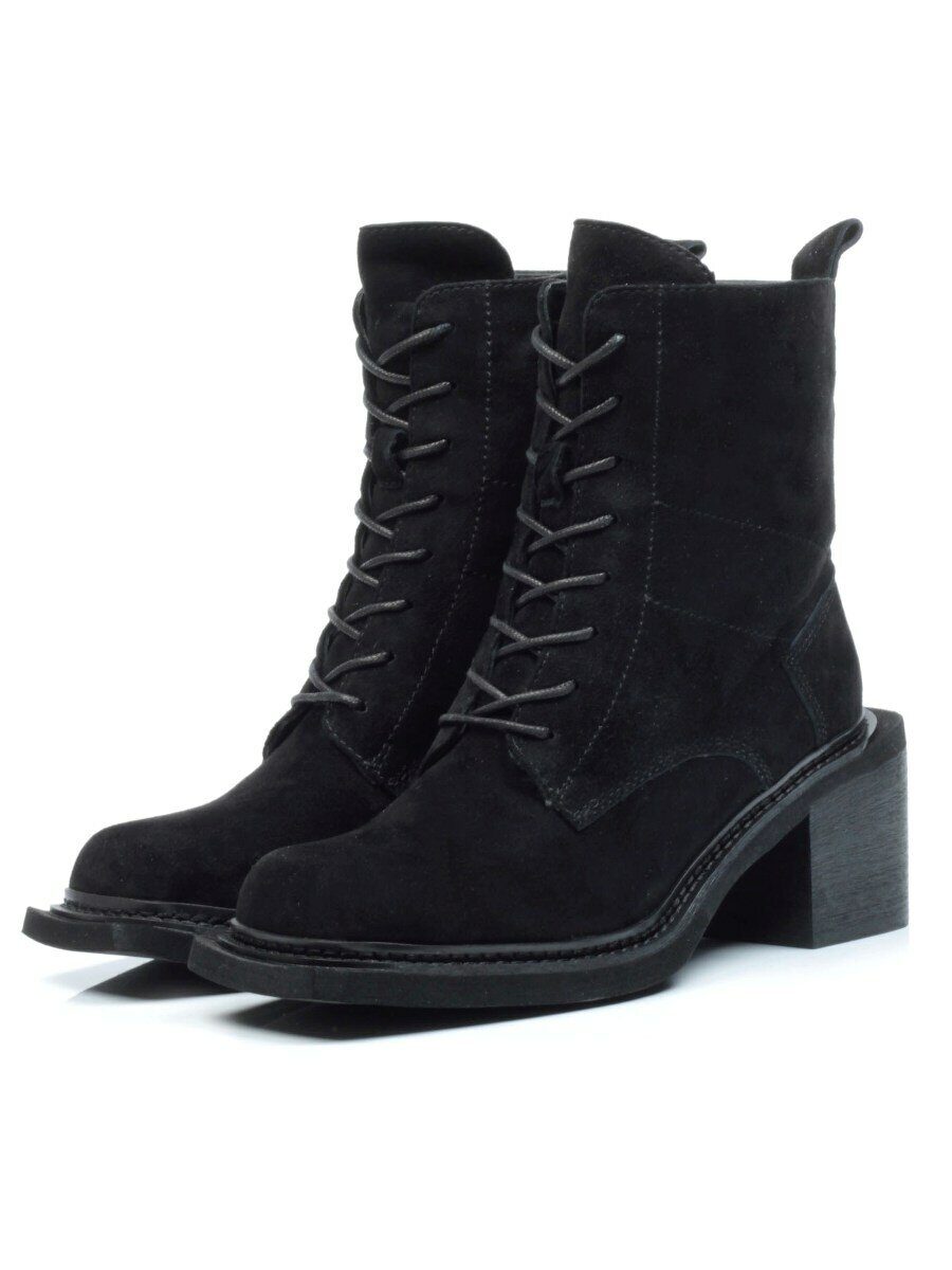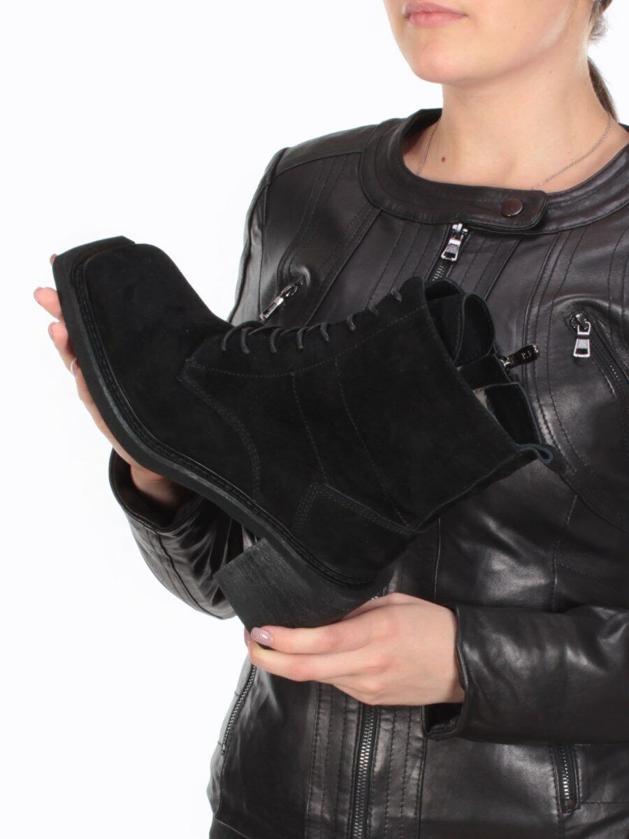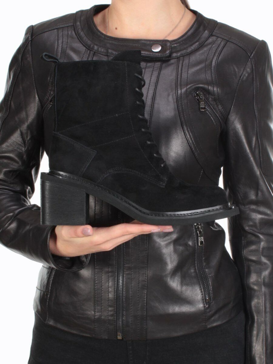 Черный Ботинки зимние женские из натуральной замши с мехом