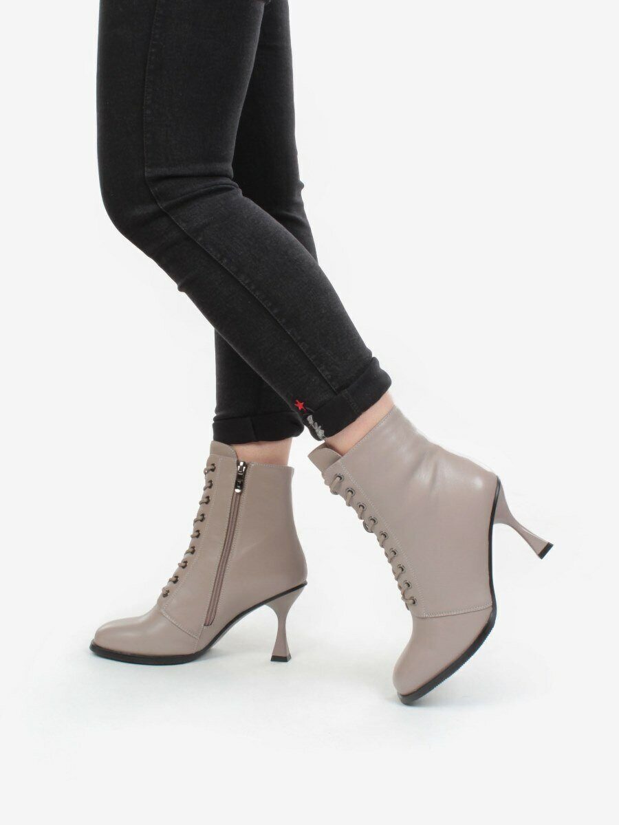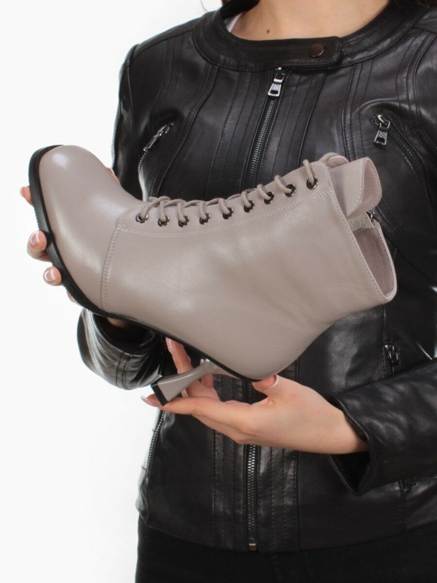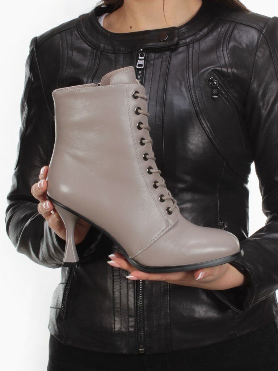 Серо-бежевый Ботинки зимние женские из натуральной кожи с мехом