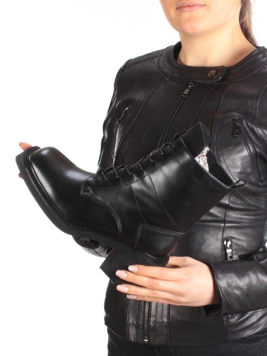Черный Ботинки зимние женские из натуральной кожи с натуральны мехом