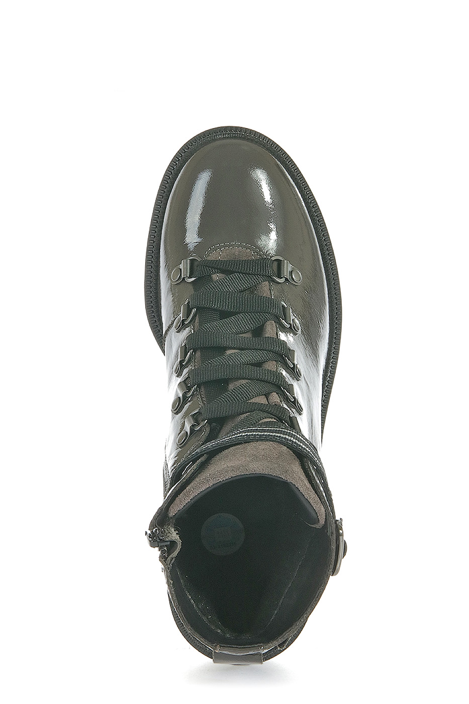 Ботинки женские выполнены из натуральной..показать лаковой кожи. Подкладка и стелька из текстиля. Детали: декоративные элементы. лаковой кожи. Подкладка и стелька из текстиля. Детали: декоративные элементы. Материал верха Натуральная кожа Материал подкладки Текстиль Материал стельки Текстиль